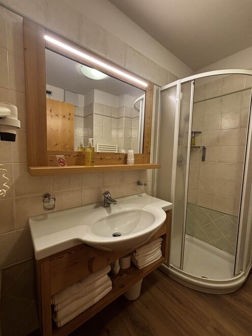 Alle Zimmern sind in Lärche Holz und haben ein Badezimmer mit Dusche, Holz Parkett, Lcd TV, Telefon, Geldschrank und Föhn. Alle Zimmern sind Nichtraucher!