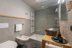 Es handelt sich um eine Junior Suite mit einem Balkon von 30 m². Jedes Element dieser wunderbaren Unterkunft verweist auf die ladinische Kultur, vom Holz über die Tapeten, von den Farben bis zu den Einrichtungselementen. Ein Eintauchen in die authentischste Tradition dieser Länder, das nicht unbeachtet bleibt.