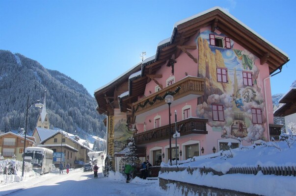 Im Zentrum, 300 mt. vom Liftanlagen Sella Ronda. Kürzlich renoviert. Zimmer mit Bad/WC, Sat-TV, Safe, Wi-Fi. Parkplatz, Garten, Ladestation für elektrische Auto. Animation mit Musik. Galadinner. Wellnescenter mit Sauna, Dampfbad, Whirlpool. Heimische Gerichte. Menùwahl. Frühstücksbuffet.