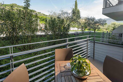 Geräumiges Doppelzimmer mit Schlafcouch und großzügigem Balkon mit atemberaubenden Gardaseepanorama, Dusche/Bad und WC, Föhn, Safe, Minibar, Telefon, SAT-TV, Internetanschluss und Klimaanlage