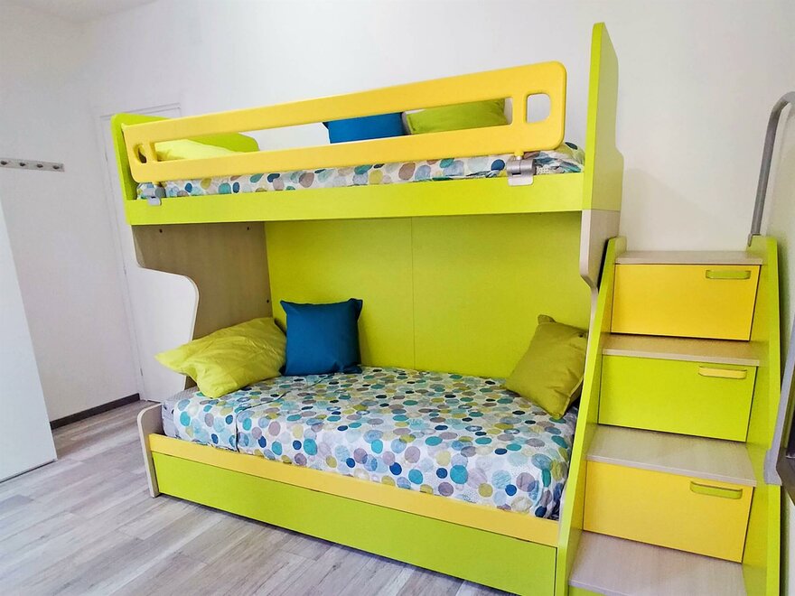 Anzahl Stockbett/en: 1, Etagenbetten, Anzahl Couch/en: 1, Doppelbett (1 Bett/2 Matratzen), Doppelschlafcouch, Couchliege, Anzahl Doppelbett/en: 1