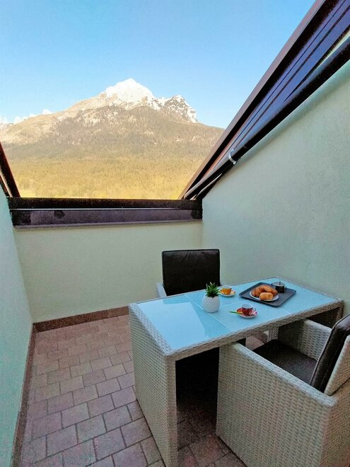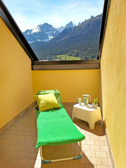 2 großzügige Terrassen machen das Apartment hell und bieten einen herrlichen Blick auf die Brenta-Dolomiten und das Dorf Andalo.