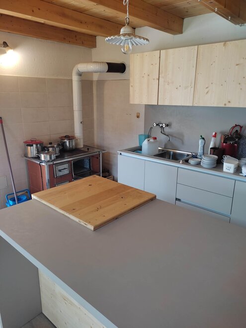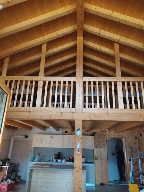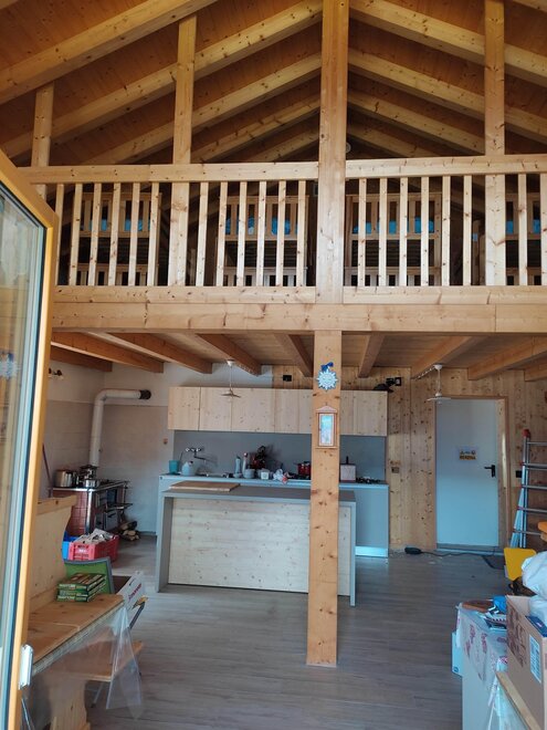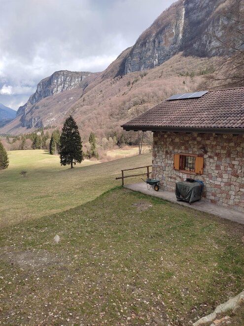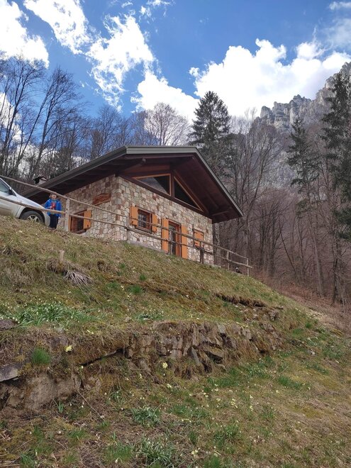 Die Hütte gehört den Einwohnern des Dorfes Dasindo und basiert auf einem alten kollektiven Eigentumssystem, das in den Alpen weit verbreitet ist, um die Berge zu verwalten.