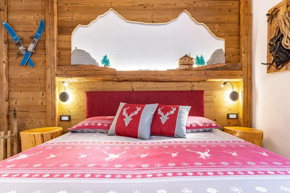 Es verfügt über zwei Doppelzimmer sowie ein Doppel- oder Zweibettzimmer mit einem Hochbett, alle mit Lärchenboden und einer autonomen Fußbodenheizung; jedes wurde auf originelle Weise von Marco, dem Eigentümer, eingerichtet. Es gibt zwei Bäder mit Duschen, eine Waschmaschine und das größte hat eine Überraschung: die Infrarotsauna für zwei Personen.