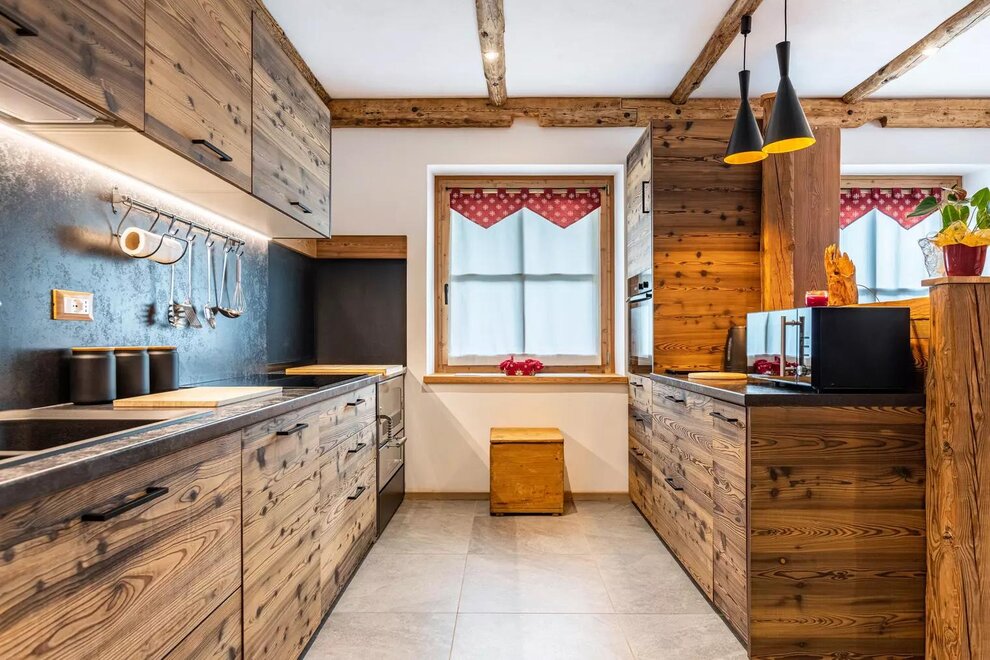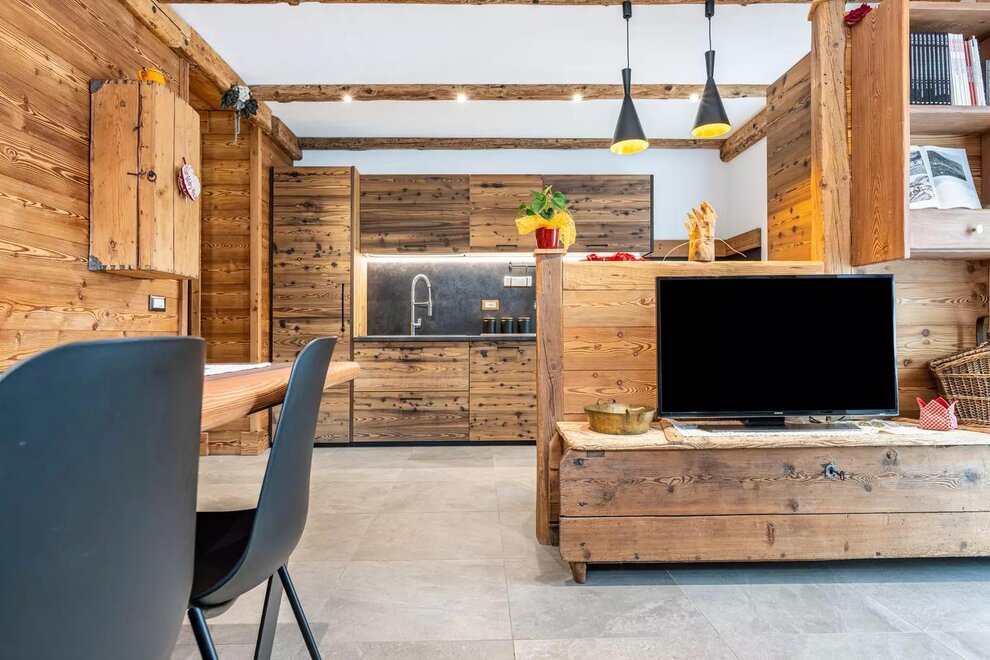 Die Wohnung ist neu, sehr auf Details bedacht und befindet sich im Erdgeschoss. Das Zirbenholz, Lärchenholz und Fichtenholz machen sie zu einem einzigartigen und magischen Ort; die Einrichtung ist eine Mischung aus Tradition und Innovation.
