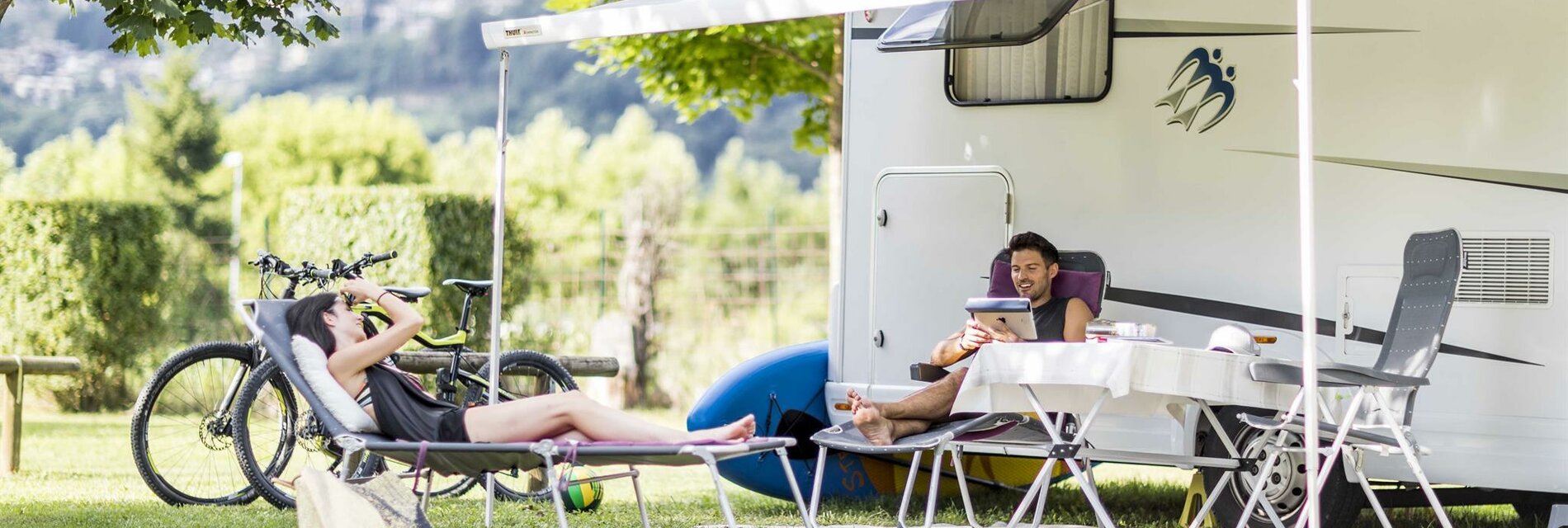 Höchste Erholung und Spaß auf schattigen und grasbewachsenen Plätzen bei Camping Riviera am Caldonazzosee (Valsugana-Lagorai): Comfortplätze bieten eine Fläche von 90/100 m2 an, als auch eine private Wasserentnahmestelle und bis zu 6 Ampére Strömung.