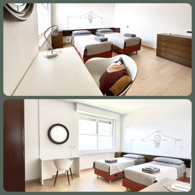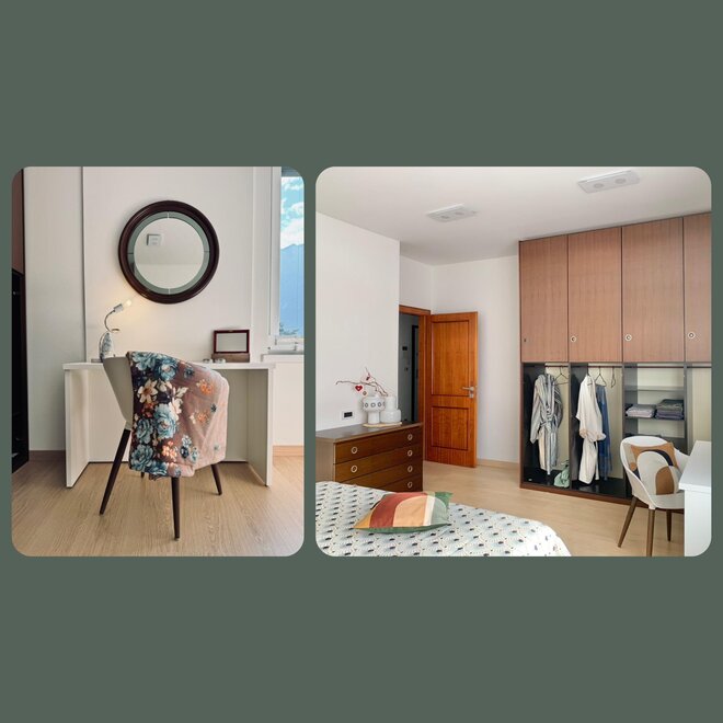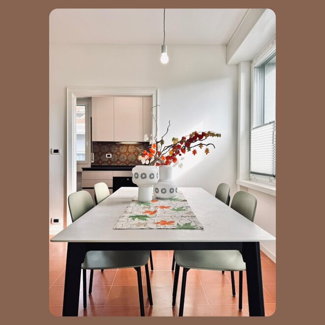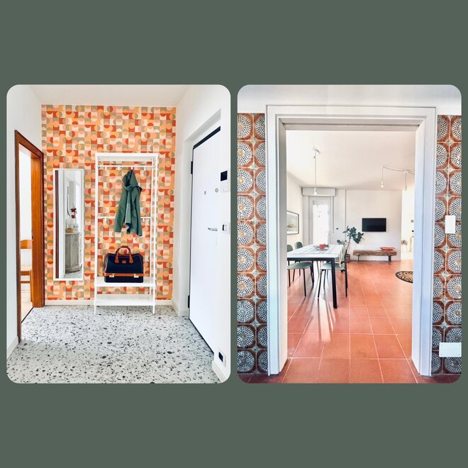 Dieses weitläufige Dreizimmer-Appartement im zweiten Stockwerk ist nach Süd-Osten ausgerichtet und hat einige Originalelemente der 70er Jahre – wie den Cotto-Boden und die Majolika-Fliesen – bewahrt, die eine fröhliche und gesellige Boho-Atmosphäre erzeugen. Die Farben, die an die warme Sonne des Gardasees erinnern, und die Ausrichtung auf die Hauptstraße machen Ihren Aufenthalt lebendig und dynamisch.