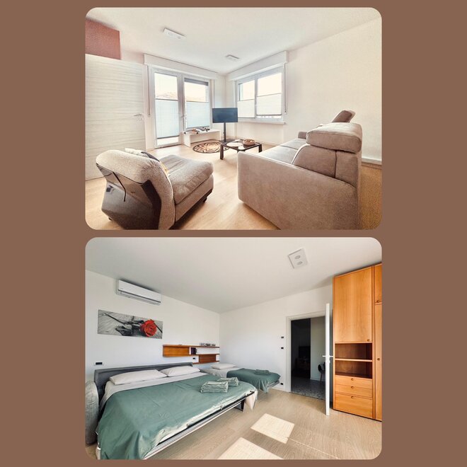 - zweitem Zimmer von 19 m² mit Schlafsofa für zwei Personen, Smart TV, Klimaanlage, Eckterrasse