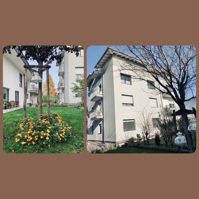 - einem kompletten Badezimmer mit doppeltem Fenster und zweiten kleinen BalkonLage/Blick Zimmer/Appartement