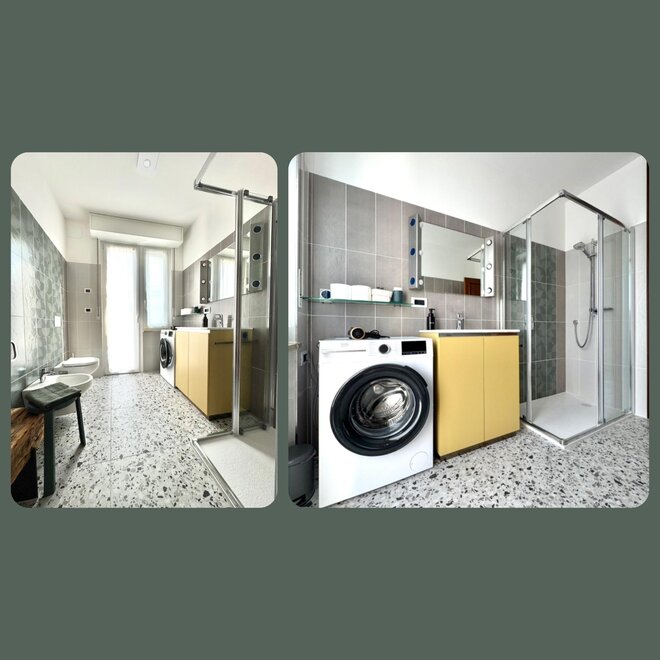 - Badezimmer und separatem Bereich mit Waschmaschine.Ausstattung Zimmer/Appartement