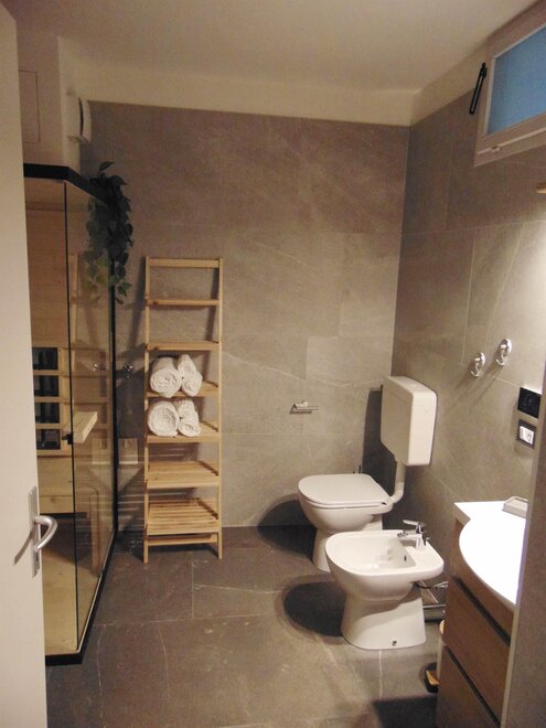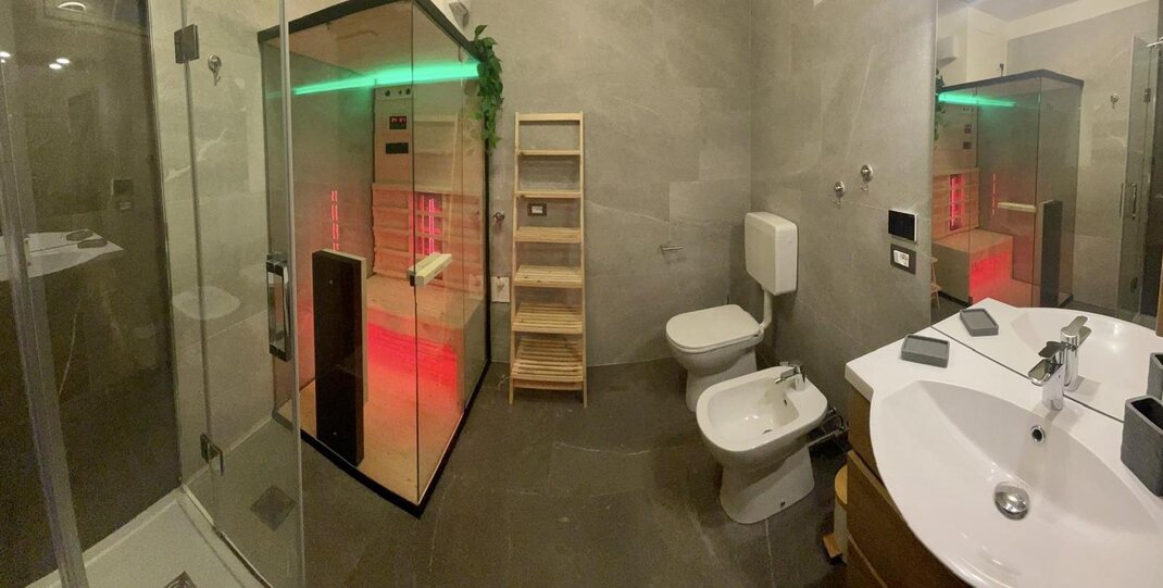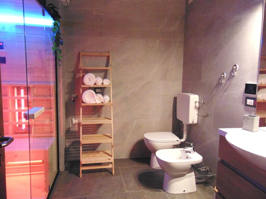 Das moderne Bad ist mit einer privaten Infrarot-Sauna ausgestattet, die Ihnen zu jeder Jahreszeit entspannende Momente beschert.