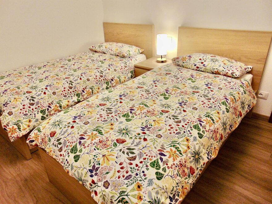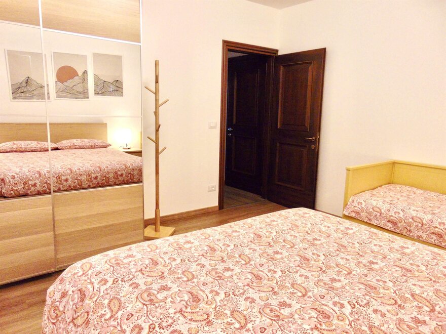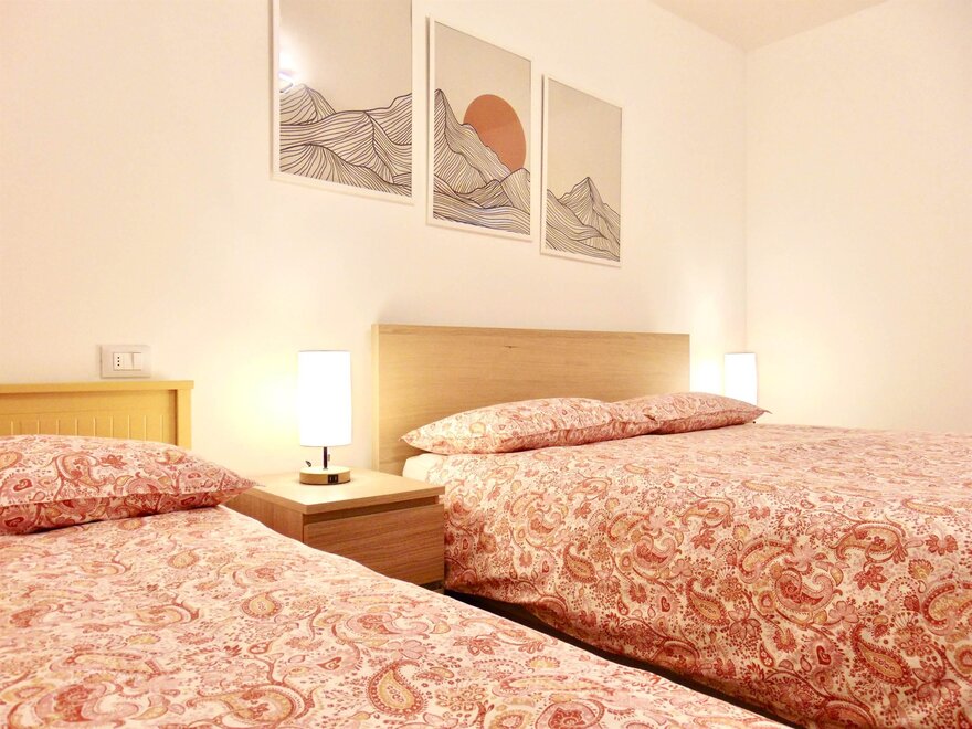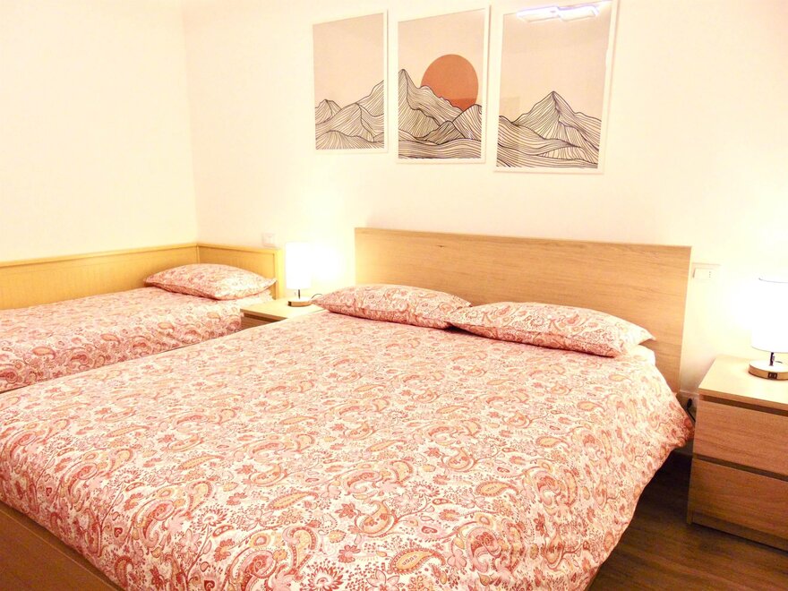Die ideale Basis, um die Schönheiten der Region zu entdecken, zwischen Natur, Sport und Kultur. Die Unterkunft Caterina erstreckt sich über eine einzige Etage und hat eine Fläche von etwa 80 m². Sie verfügt über zwei Schlafzimmer, eines mit einem Doppelbett und einem Einzelbett, das andere mit zwei Einzelbetten.Lage/Blick Zimmer/Appartement