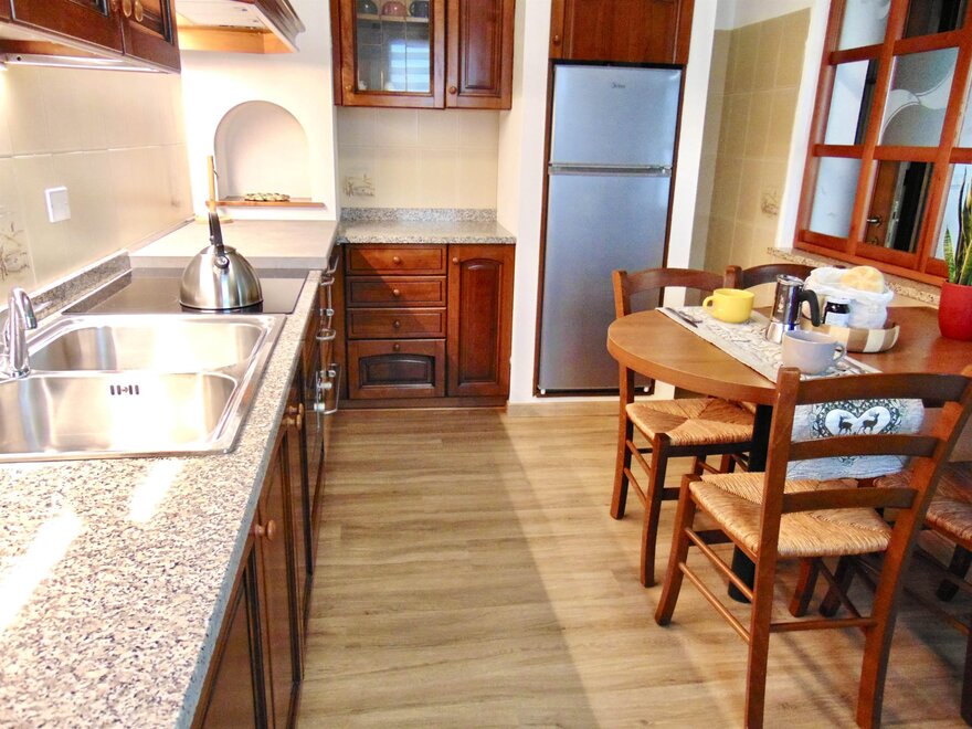 Zwei geräumige Schlafzimmer, ideal für Familien, Paare oder Gruppen. Eine große, gut ausgestattete Küche mit einem gemütlichen Wohnzimmer.