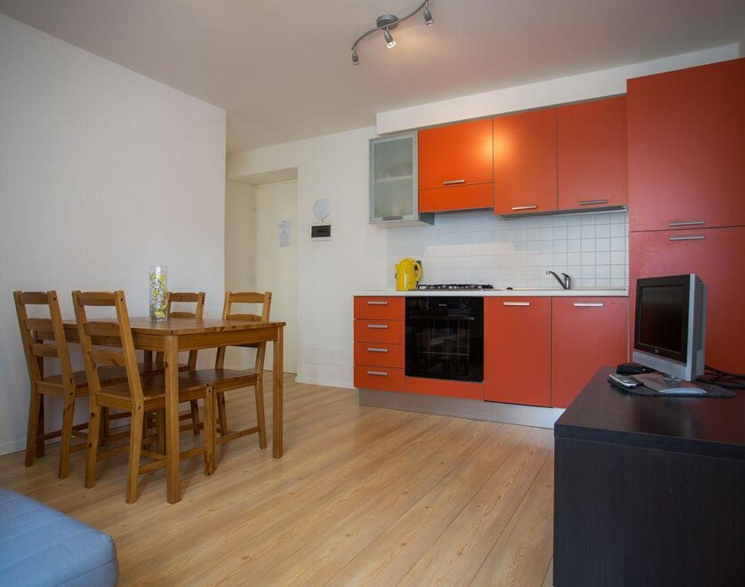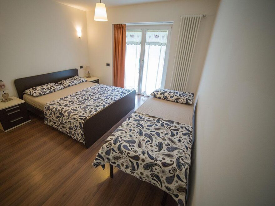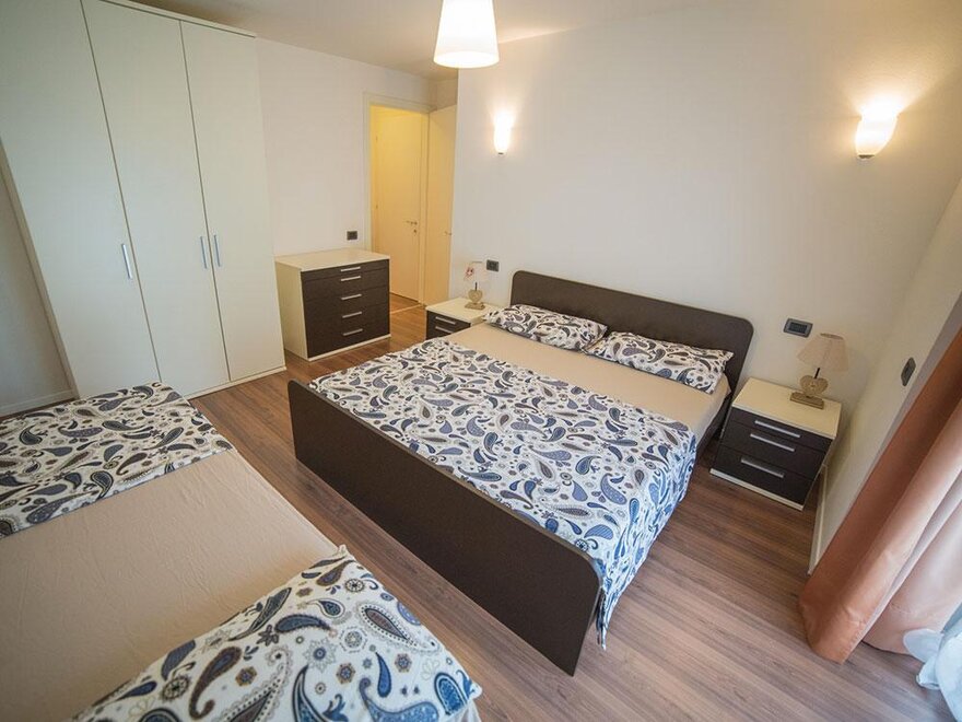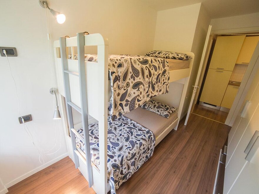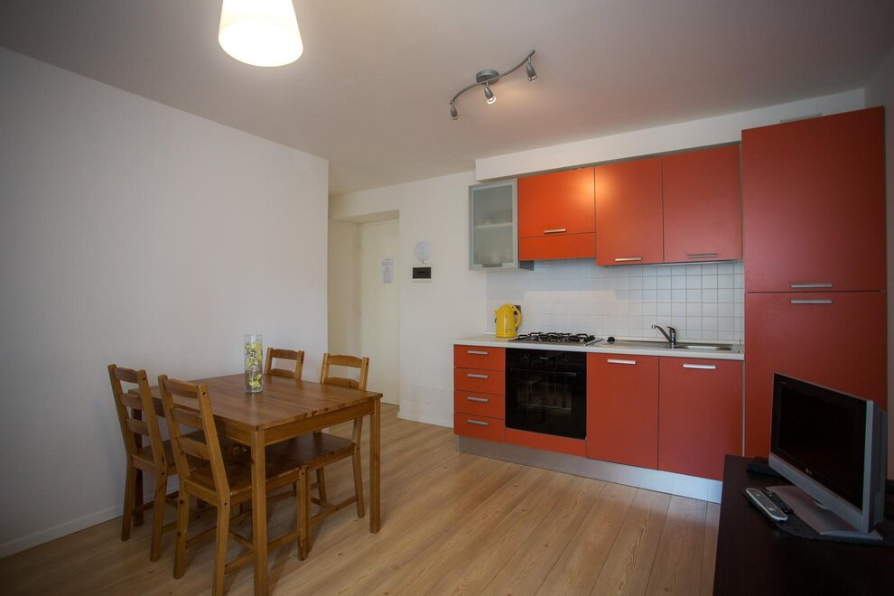 Die Wohnung befindet sich im dritten Stock und besteht aus 2 Schlafzimmern, einem Wohnzimmer mit Küche und einem Badezimmer, insgesamt für 6 Schlafplätze.