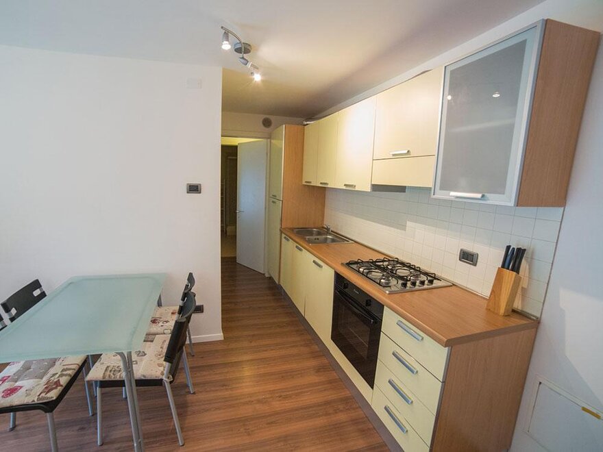 Die Wohnung besteht aus 2 Schlafzimmern, Wohnzimmer mit Küche, Badezimmer mit Fenster und Balkon für insgesamt 5/6 Betten.