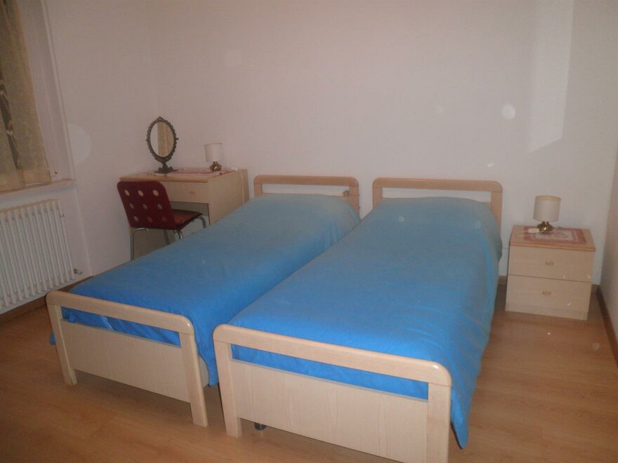 Es gibt ein Doppelzimmer, ein Zweibettzimmer und Einzelzimmer, das ein Studio oder ein Spielzimmer für Kinder werden kann. Das Badezimmer hat Dusche und Badewanne. Es gibt auch einen Abstellraum, einen gemeinsamen Raum für die Ausstattung, einen Parkplatz für ein Auto und einen gemeinsamen Garten.