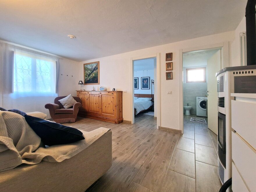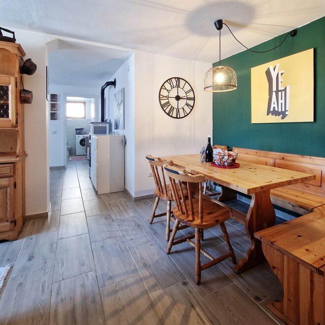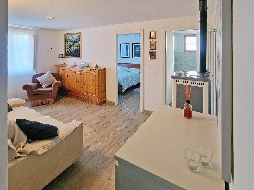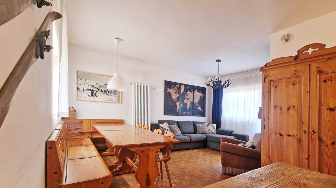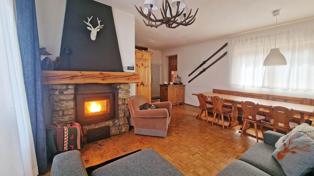 Casa Polsa "1964" - #01: Unterkunft von 65 qm, 4/5 Schlafplätze ( 01 Zimmer mit Doppelbett + 01 Zimmer mit Etagenbett + ausklappbares Bett im Wohnzimmer), Wohnzimmer, ausgestattete Küche mit Essbereich und 1 Bad mit Whirlpooldusche und Waschmaschine. Unterkunft im Erdgeschoss eines Wohnhauses mit privatem Garten vor dem Haus, nicht eingezäunt, ausgestattet mit Tischen, Bänken, Liegen, Sonnenschirm und Grill. Ca. 300 m von den Skipisten entfernt. Geeignet für Menschen mit Behinderungen.