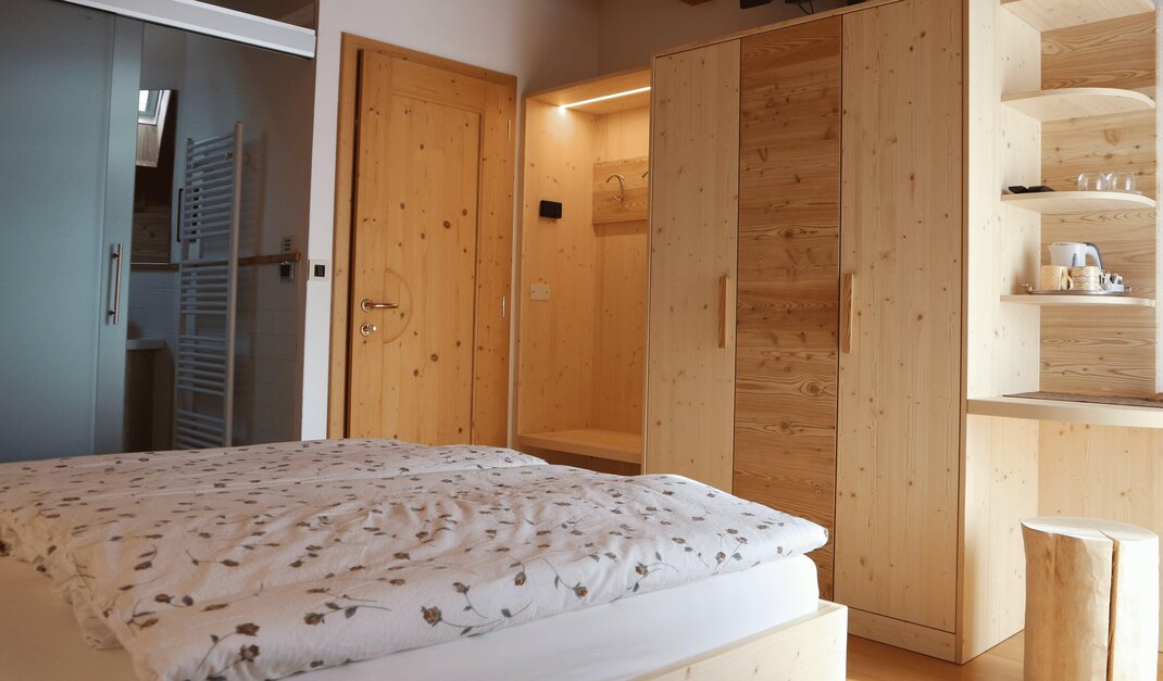 Ruhiges Zimmer/Appartement, Schrankbett, Internetanschlussmöglichkeit, Grundausstattung (Handtücher, Bettwäsche, Seife, Toilettenpapier), Zentralheizung, Toilettenartikel, Einfache Möblierung, Kinderhochstuhl, Schrank, WiFi, Privater Eingang, Kaffee-Maschine, Schreibtisch, Balkon, Rustikale Möblierung, Decken, Deckbetten, Holz- oder Parkettboden, Steckdose in Bettnähe, Kühlschrank