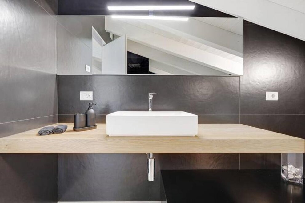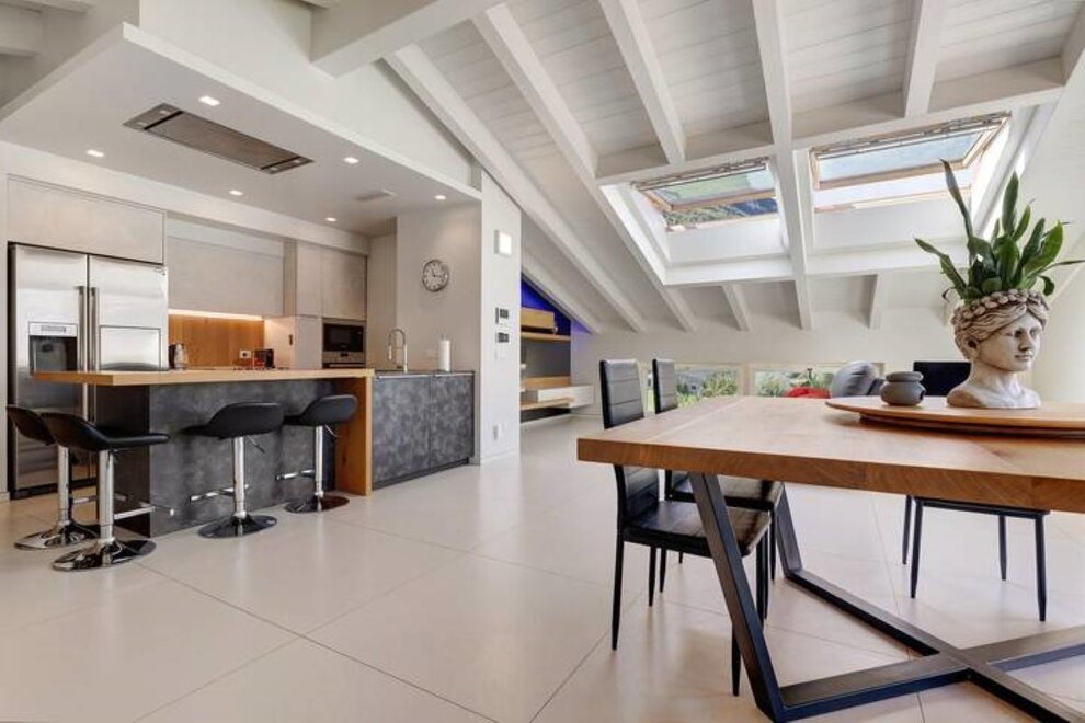 Dieses Einfamilienhaus, das aus nur 2 Wohneinheiten besteht, wurde mit großer Liebe zum Detail sorgfältig renoviert und bietet den Gästen eine moderne Dachwohnung mit Sichtbalken, die für einen rustikalen und einladenden Touch sorgen.