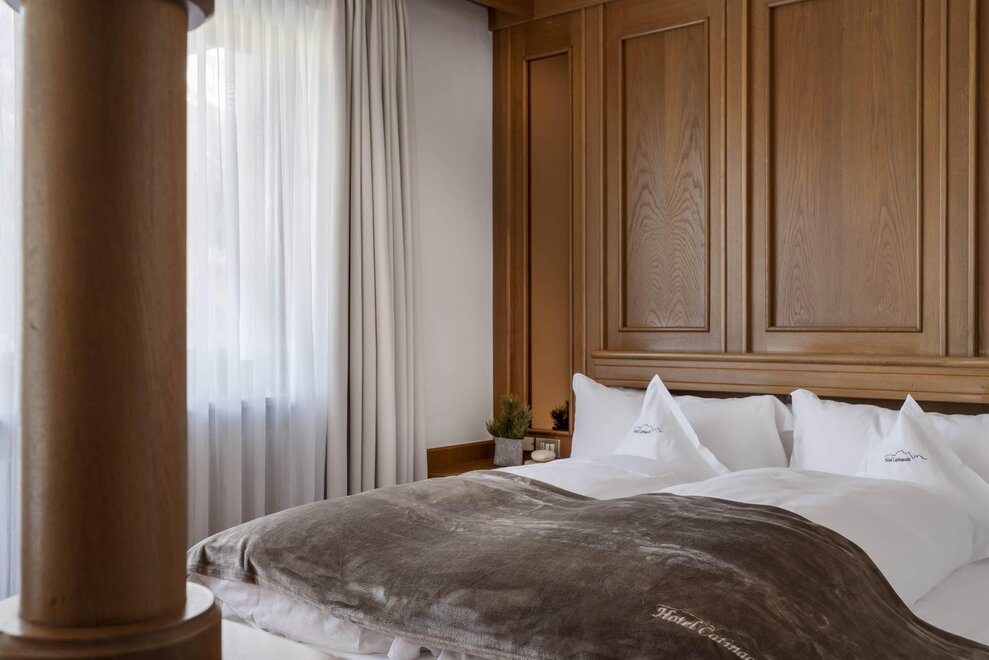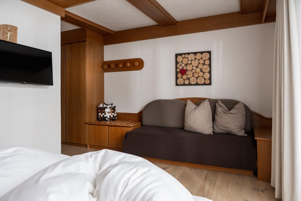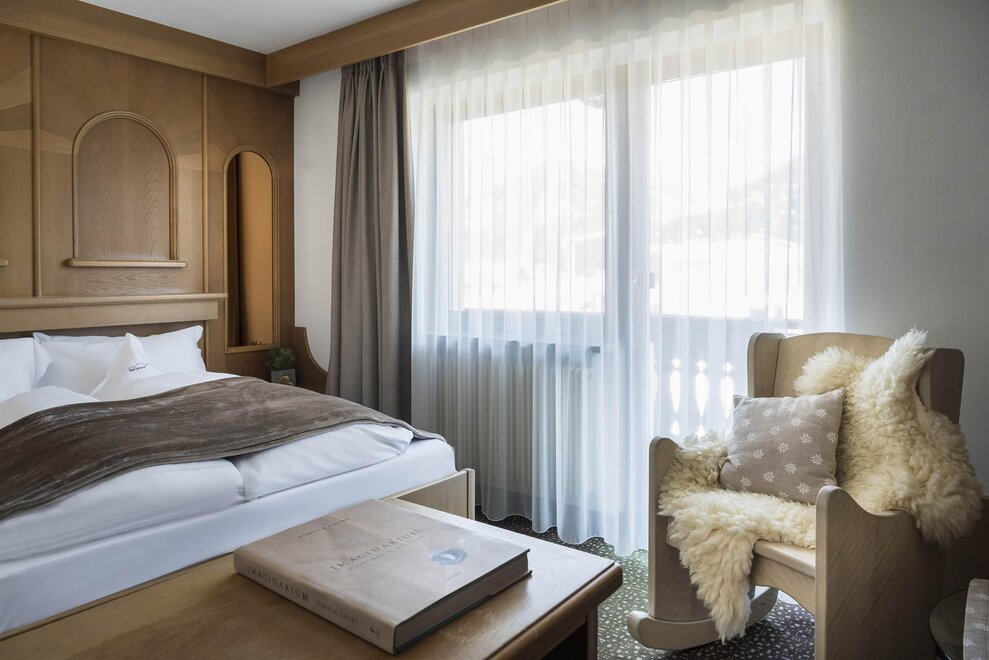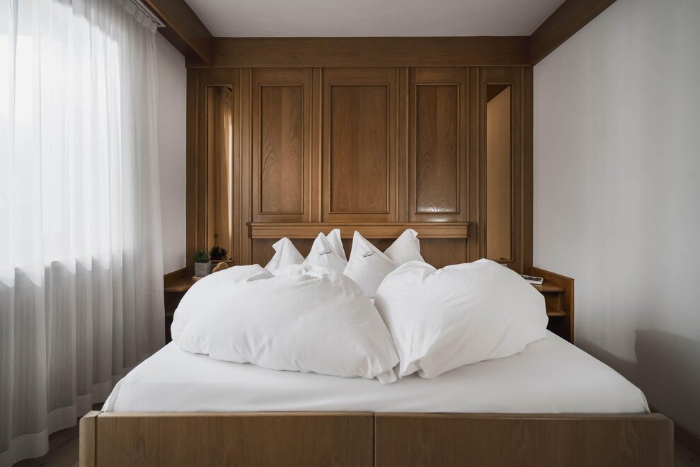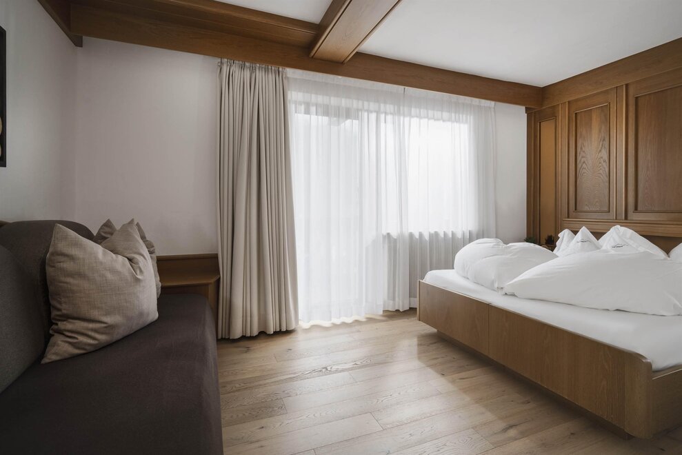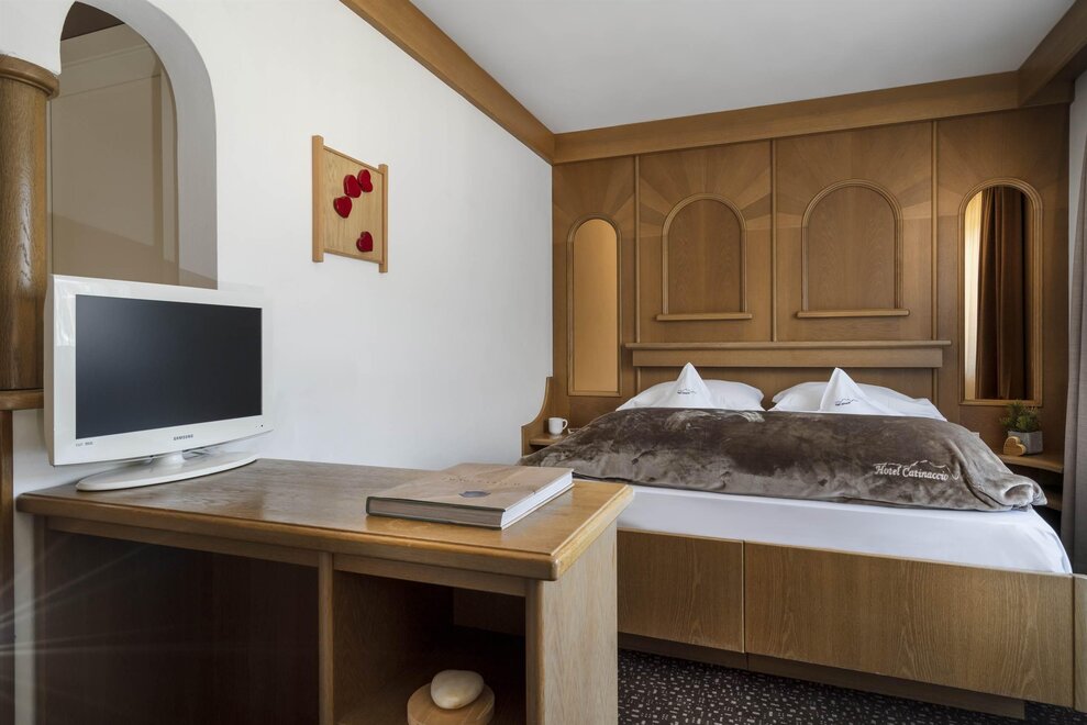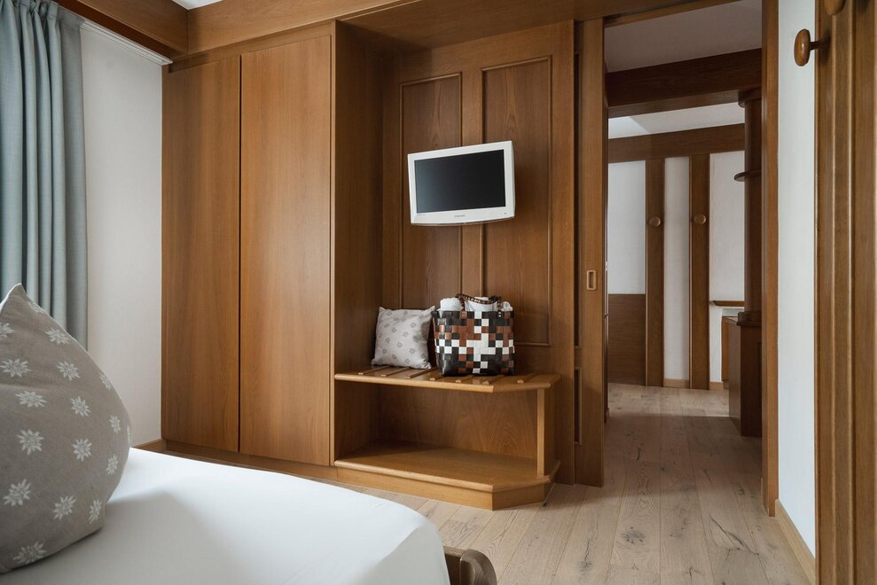 Bei warmem Holz mit Details erinnern an die ladinische Kultur, Das Zimmer hat ein Einzelbett, Sat-TV, Balkon, Telefon, Safe, Bad mit Dusche, Haartrockner und Pflegeprodukten. Befindet sich auf der Rückseite des Hotels, jeden Morgen können Sie aufwachen, um das Zwitschern der Vögel und genießen Sie den Blick auf den Rosengarten und Mugoni.
