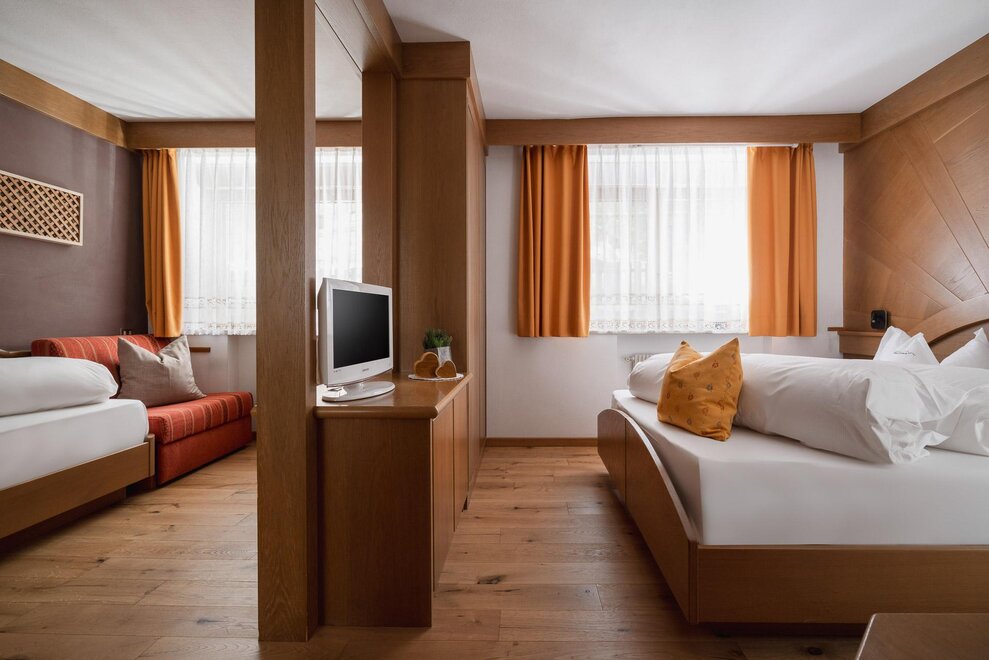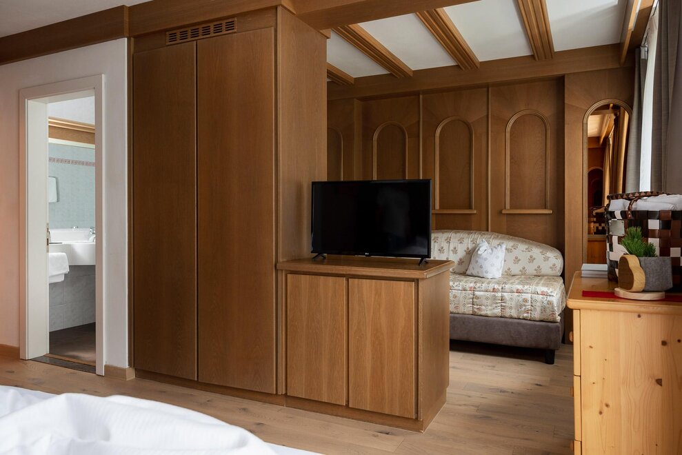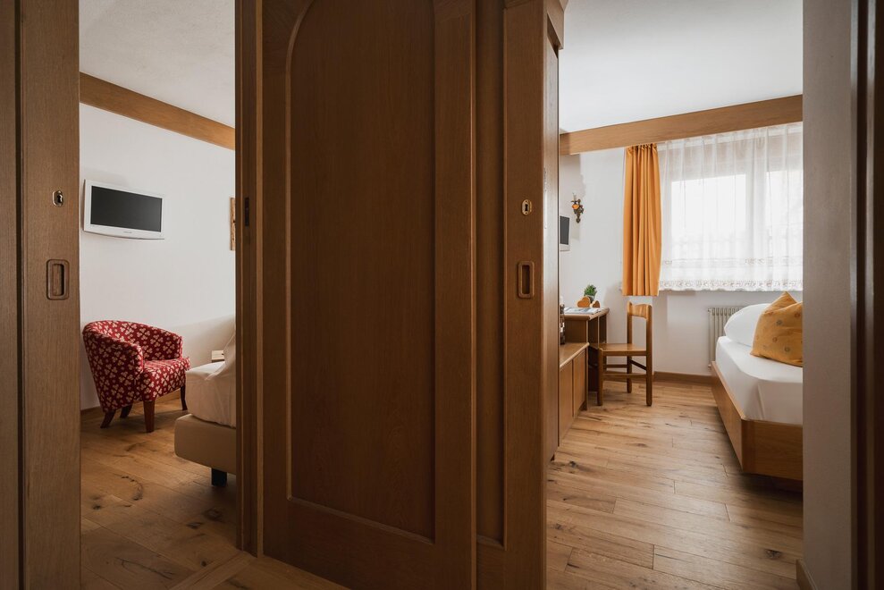 Das Hotel Catinaccio in Vigo di Fassa ist auch ein Familienhotel. Es verfügt über angenehme Zimmer für Familien von 4-5 Personen. Die Familiensuite besteht aus zwei verbundenen Zimmern und einem Bad.Zudem geben wir Ihnen ein Kinderbett und die Bettwäsche dazu für die ganz Kleinen oder aber ein Seitengeländer für die Größeren.