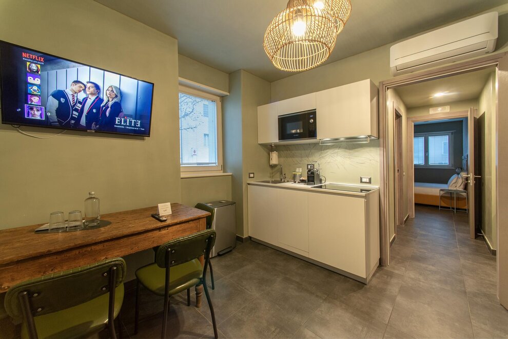 Dies ist die erste CityU-Wohnung, die sich durch einen modernen, aber dennoch retromäßigen Stil auszeichnet. Sie bietet Platz für zwei Personen dank des bequemen Rollbettes und verfügt über alle Annehmlichkeiten für einen komfortablen Aufenthalt in Trient.