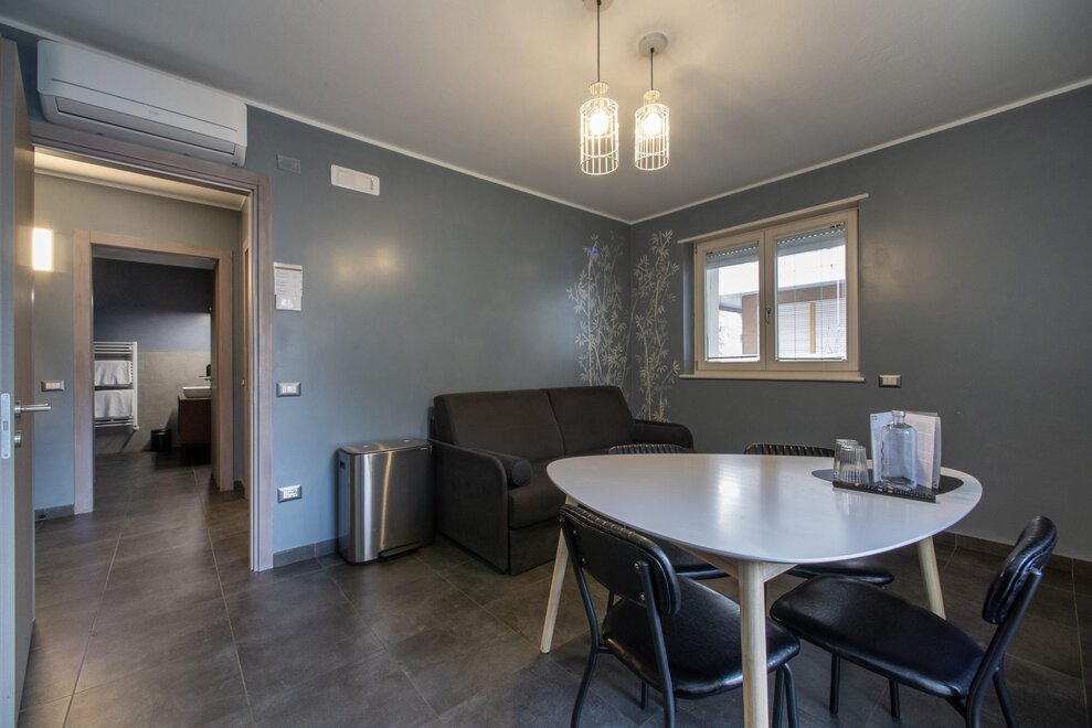 50 m2, ideal für die Unterbringung von ein bis vier Personen. Im Inneren finden Sie ein geräumiges und helles Schlafzimmer mit Doppelbett, ein gemütliches Wohnzimmer mit voll ausgestatteter Küche, ein bequemes Schlafsofa und ein geräumiges Badezimmer.Zu Ihrer Verfügung stehen ein praktischer Privatparkplatz und der Komfort eines automatischen Check-in.