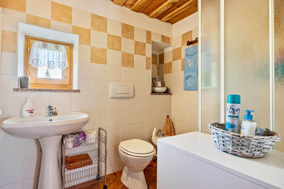 - Erdgeschoss: Küche (Gasherd, kleiner Kühlschrank mit Gefrierfach), Esszimmer mit Tisch und Bad (mit Dusche, Bidet, Waschbecken und WC).