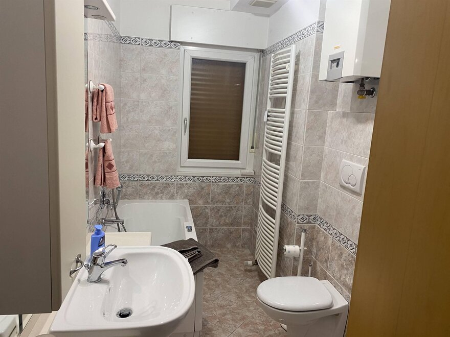Schöne Zweizimmerwohnung im Erdgeschoss mit 50 m², kürzlich renoviert, bestehend aus Wohnbereich, Schlafzimmer mit Doppelbett und Badezimmer.