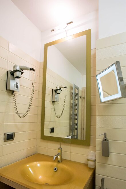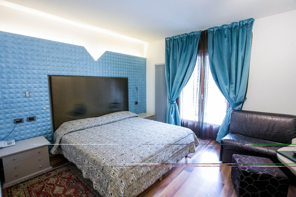 Ausgestattet mit jedem Komfort, mit Parkettboden, TV, WLAN, Telefon, Minibar, Safe, ausgestattetem Bad, Spa-Set, Balkon mit Blick auf den Monte Spinale. Hinweis: Die Maße umfassen das Zimmer und das Bad. Die Fotos dienen nur als Beispiel. (Es gibt verschiedene Typen und unterschiedliche Einrichtungen)