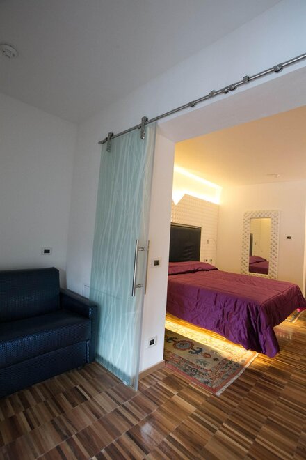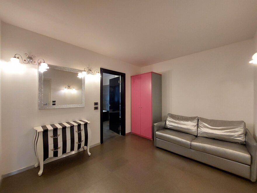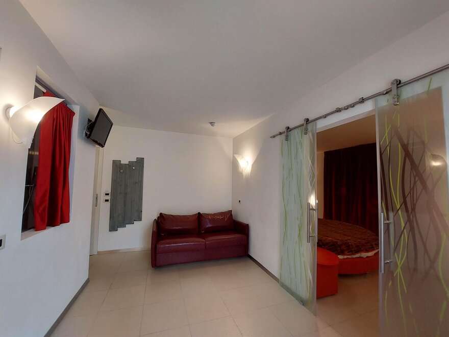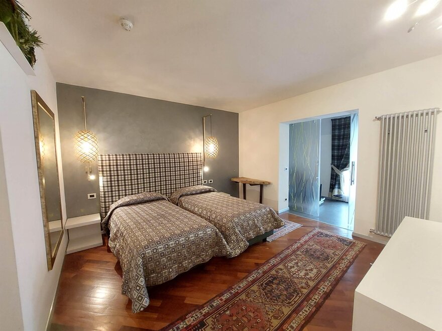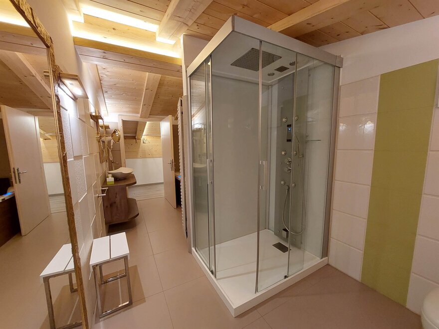 Besonders geeignet für anspruchsvolle Familien, bestehend aus 2 Erwachsenen + 2, 3 Kindern, geräumig und komfortabel, geschmackvoll eingerichtet, LCD-TV, Internetverbindung Wi-Fi, Holzboden, Doppelzimmer, separater Eingang, Whirlpool und Dusche, Safe, Telefon, Bademantel, Terrasse mit spektakulärem Blick über das gesamte Tal und Madonna di Campiglio oder auf den Monte Spinale.