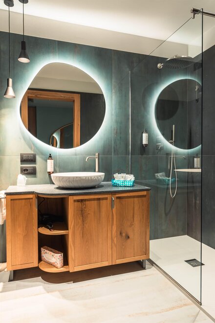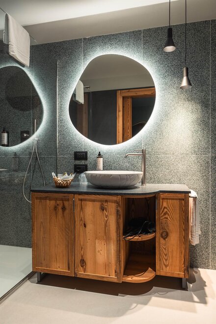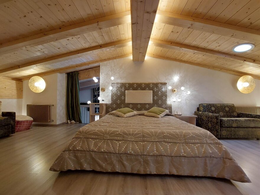 Faszinierende und ansprechende Suiten, wichtig wegen ihrer Besonderheiten. Sie verfügen über ein großes Doppelbett, ein separates Wohnzimmer mit zusätzlichem Doppelbett, ein großes Bad, ein Spa-Set, LCD-Fernseher, WLAN, Telefon, Minibar, Safe. Fantastischer Blick auf Madonna di Campiglio oder den Monte Spinale. Einige mit Whirlpool oder Doppel-Dusche. Einige mit Ankleidezimmer.