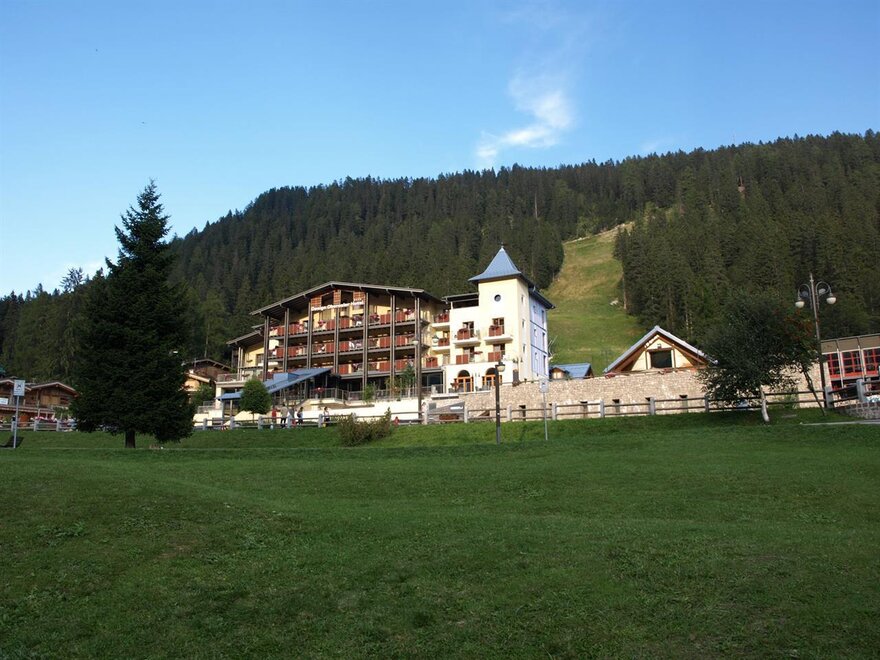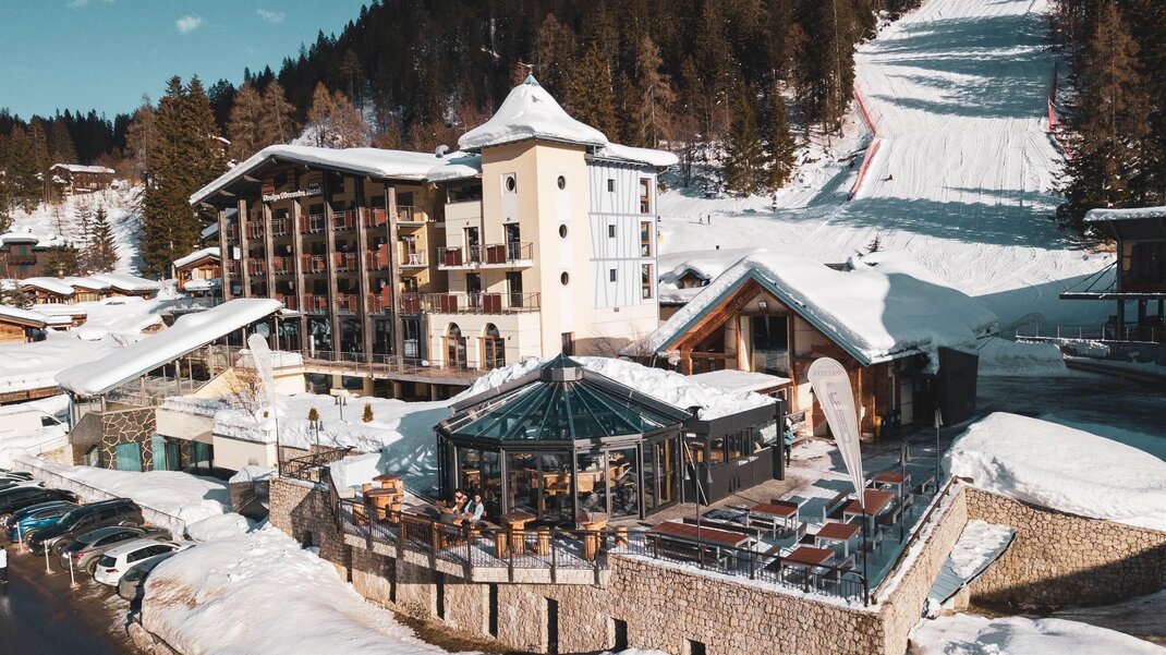 Unter kühlen Tannen....die "Quellen" der Schönheit. Geschützt von den Dolomiten der Brenta-Gruppe und den Adamello- und Presanella-Gletschern bezaubert Madonna di Campiglio durch seine eindrucksvolle, ursprüngliche Natur. In diesem von der Sonne verwöhnten Tal empfängt Sie das Hotel Oberosler mit seiner herzlichen Gastlichkeit, eingebettet in eine fantastische Landschaft. Das Hotel Oberosler befindet sich in einer besonders günstigen Lage nur 100 m vom Zentrum von Madonna di Campiglio und vom Laden- und Einkaufszentrum entfernt. Außerdem sind es nur 10 m bis zur Seilbahn Spinale, die mit dem gesamten Skigebiet verbunden ist. So können Sie mit angeschnallten Ski direkt bis vors Hotel fahren.