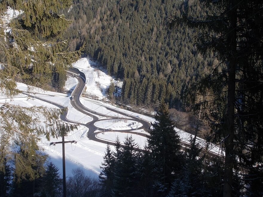 Das Haus erreicht man, indem man an der großen Runde südlich von Moena von der Staatsstraße 48 abbiegt und entlang des Sportplatzes in Richtung Medil weiterfährt.