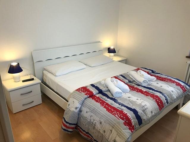 Die Wohnung ist geräumig und hell und verfügt über Balkone. Es gibt 3 oder 4 Schlafzimmer, 2 Bäder, einen Wohn-/Essbereich und eine Küche mit Backofen und Kühlschrank. Die Unterkunft verfügt über Satellitenfernsehen, eine Waschmaschine und Wi-Fi sowie eine Spülmaschine. Außerdem stehen den Gästen eine praktische Doppelgarage und mehrere Außenparkplätze zur Verfügung.