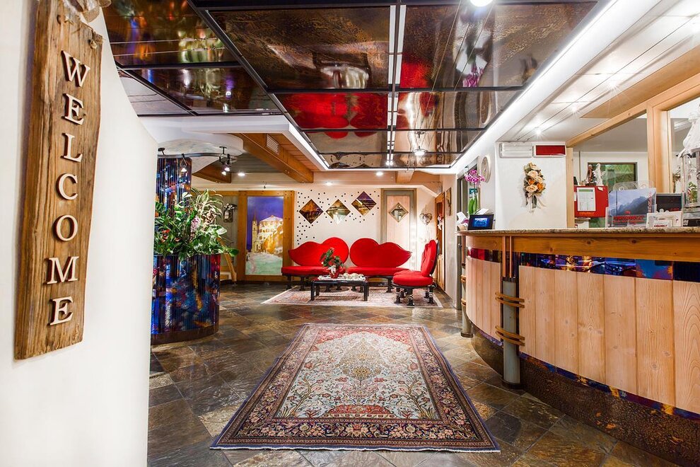 Die Zimmer sind alle ausgestattet mit eigenem Bad, Dusche und Fön, Telefon mit Internetanschluss und Flachbildfernseher, Safe, jedes Zimmer hat einen gemütlichen Balkon, um das Schauspiel der Berge zu genießen.Sanitäre Ausstattung