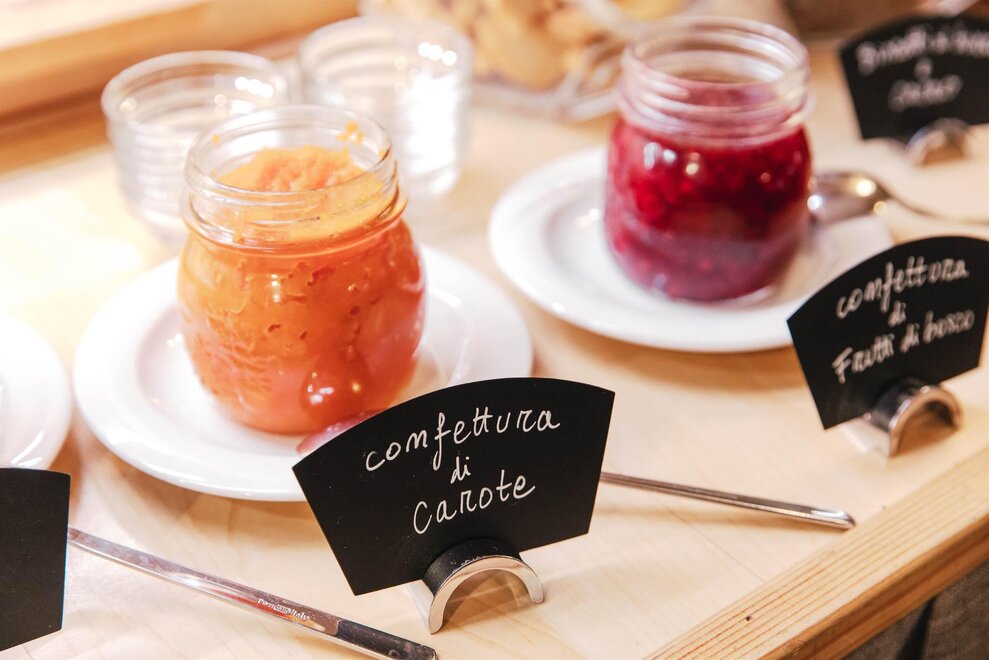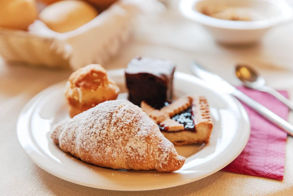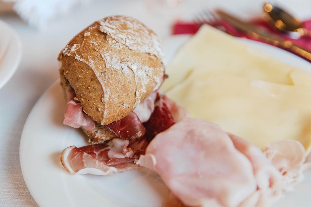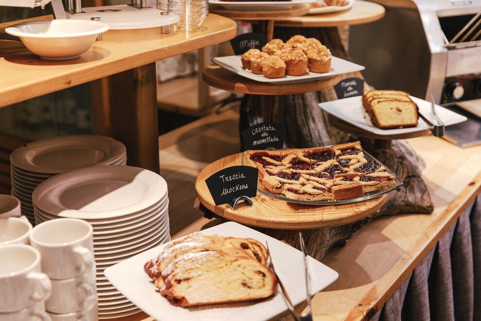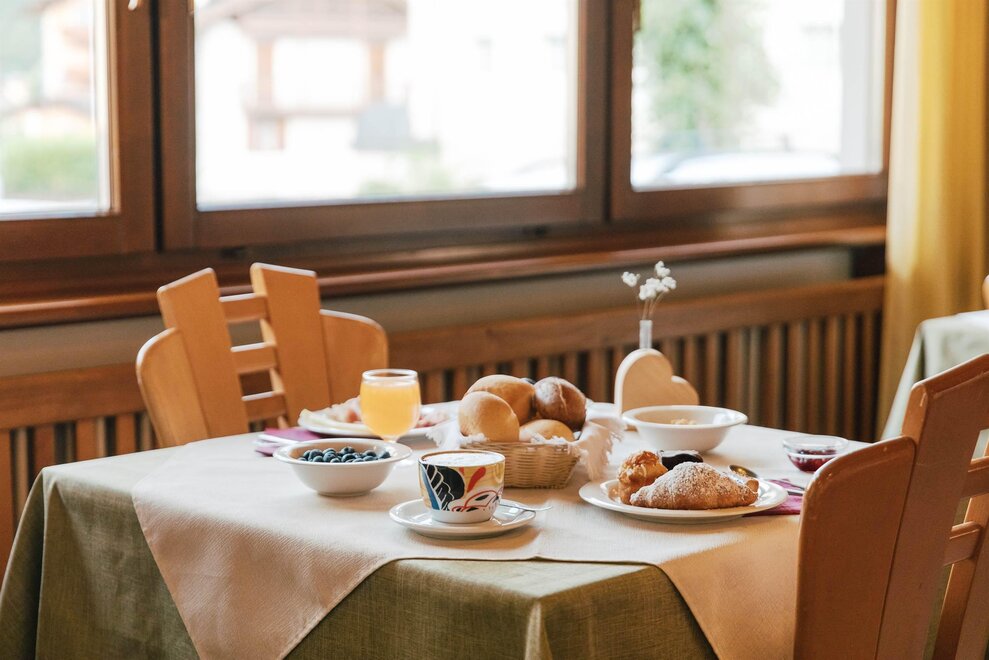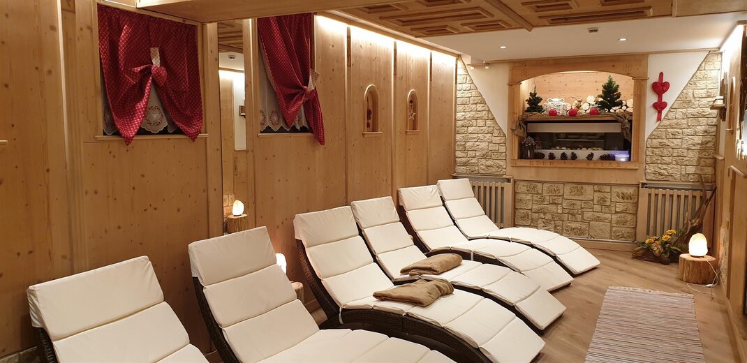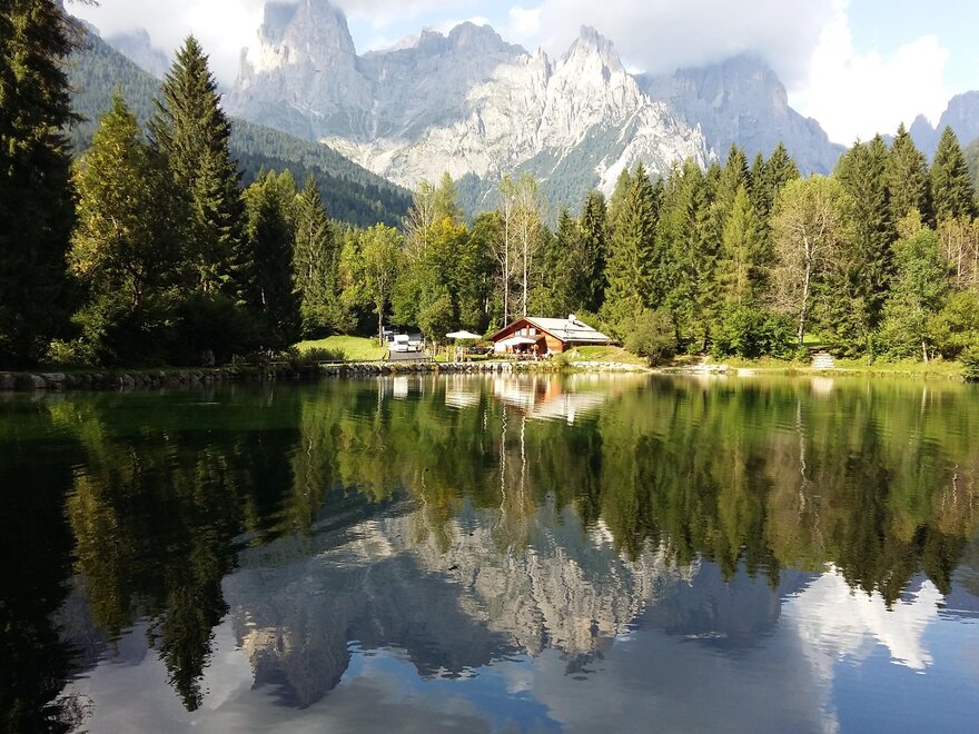 Die Familienzimmer sind die geräumigsten und haben eine besonders einladende Umgebung: einige haben Holzböden und andere Teppichböden, eine Sitzecke mit Sofa und einen Panoramablick auf die Pale di San Martino.