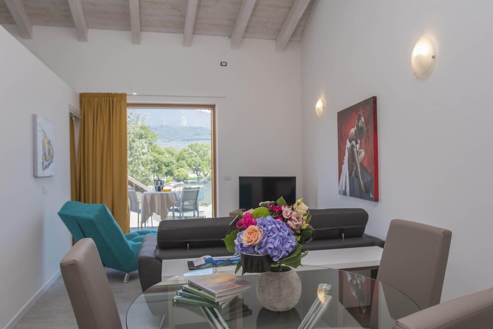 Unsere Smart Suiten verfügen über einen Wohnraum mit voll ausgestatteter Kochecke und eignen sich vortrefflich für einen behaglichen Urlaub am Gardasee.