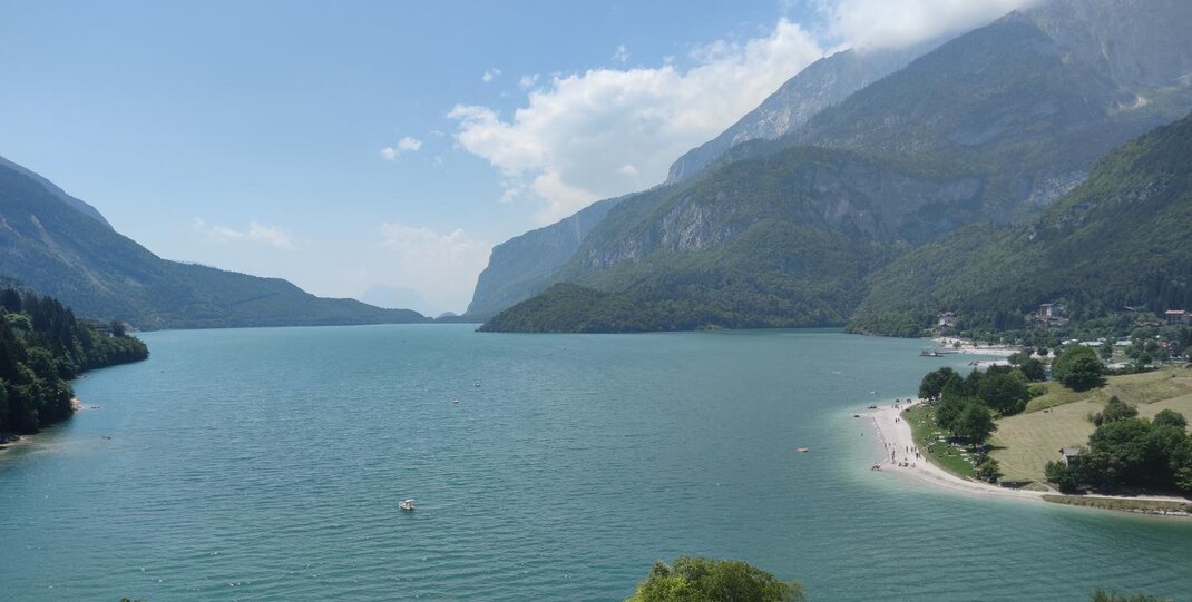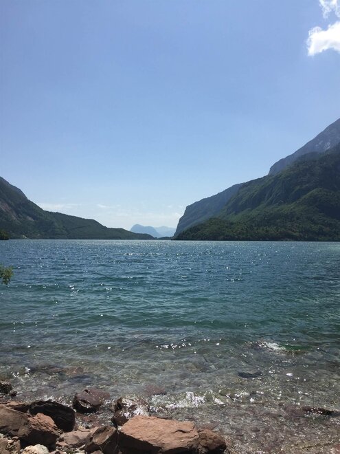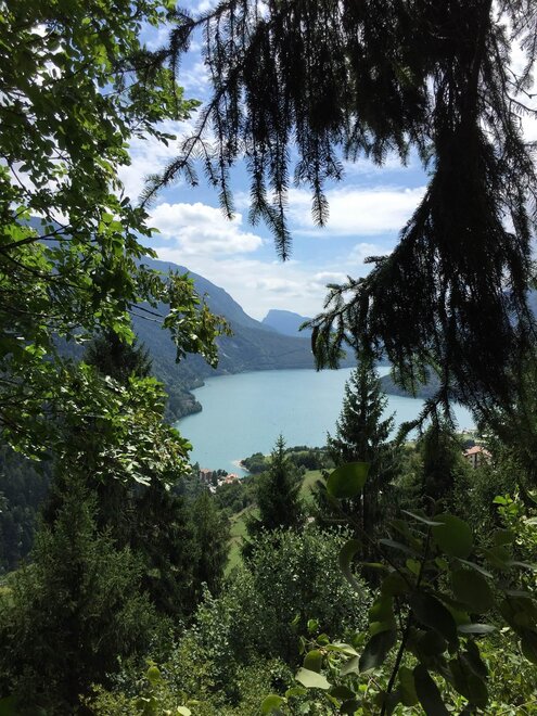 - Von Riva del Garda kommend entlag der Staatstraße 421, fahren Sie bis Sarche, biegen Sie links ab und folgen Sie den Schildern nach S.Lorenzo in Banale. Von dort fahren Sie entlag des Sees bis Molveno (insg. 54 km)
