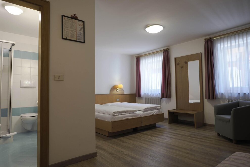 Es kann die Losung sein fur Leute, die einen Urlaub im Freiheit verbringen wollen und gleichzeitig eine intime und behagliche Atmosphare suchen. Wir bieten Ubernachtungen mit Fruhstucksbuffet an. Zum Fruhstuck steht Ihnen eine typisch einheimische Stube mit Kachelofen zur Verfugung. Jedes Zimmer hat Dusche und Fernsehapparat,Radio, Fohn, und eine Safe.Lagerraum fur Ski, Skischuhe und Fahrrader, sind vorhanden, ebenso Parkplatze und ein kleiner Garten. Bus und Skibushaltestelle sind in unmittelbarer Nahe, wie auch Restaurants und Pizzerias. Unsere Gaste bekommen 10%Ermassigung mit Gutschein. Auch Gehbehinderte finden bei uns keine Schwierigkeiten. Wenn Sie jetzt Lust haben, uns kennenzulernen, kommen Sie vorbei oder rufen Sie an Wir sind das ganze Jahr geoffnet.