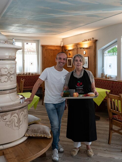 Der Halbpensionsservice findet in einem Partnerrestaurant statt, das 50 Meter vom Garni entfernt liegt. Frühstück auch für Zöliakiebetroffene.