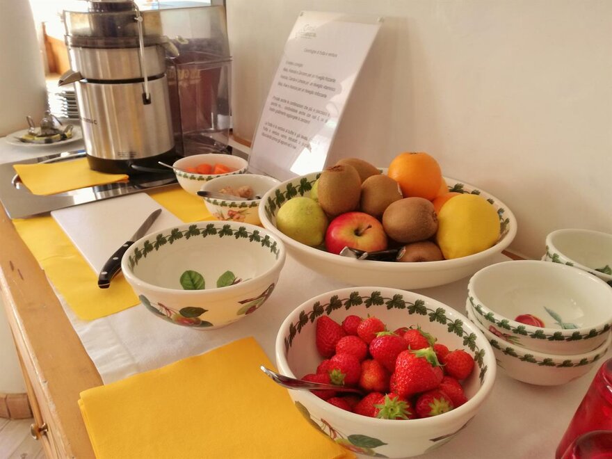 Kamera ausgestattet mit allen Annehmlichkeiten: SAT-TV, Minibar, Safe, Telefon, WLAN-Internetverbindung, Balkon, private Innenbadezimmer mit Pflegeprodukten und Haartrockner. Der Halbpensionsservice erfolgt über ein angeschlossenes Restaurant, das 50 Meter vom Garnì entfernt ist. Frühstück auch für Zöliakiebetroffene.