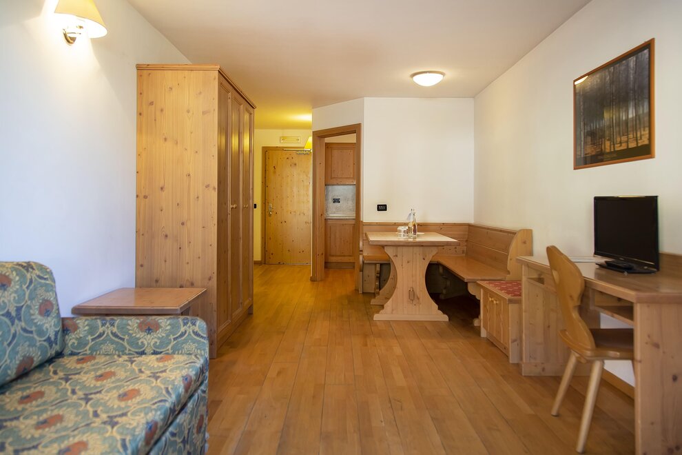 Die Standard Zimmer, im typischem Bergstil mit Holzboden sowie Holzeinrichtungen, befinden sich im Hauptgebäude. Die Gäste können jeglichen Komfort genießen und einen unvergesslichen Urlaub im Trentino erleben.