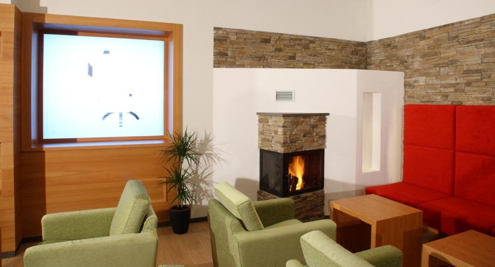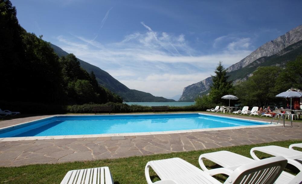 Angenehme Abende in Gesellschaft erwarten Sie in den gemütlichen Sälen des Hotels und auf unserer schönen Terrasse mit Blick über den See zum Dorf und die Dolomiten. Aufenthaltsraum, Lesesaal, Fernsehraum mit HIFI-Anlage und Leinwand für Filme und Konzerte und eine Kellerbar stehen zu Ihrer Verfügung. Wir liegen nur 1 km vom Dorf und 5 km vom Paganella Skigebiet entfernt.