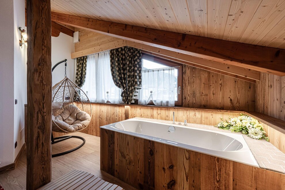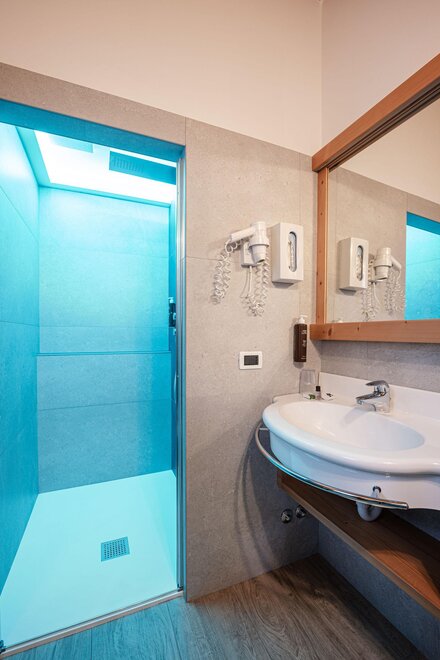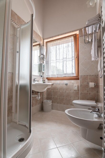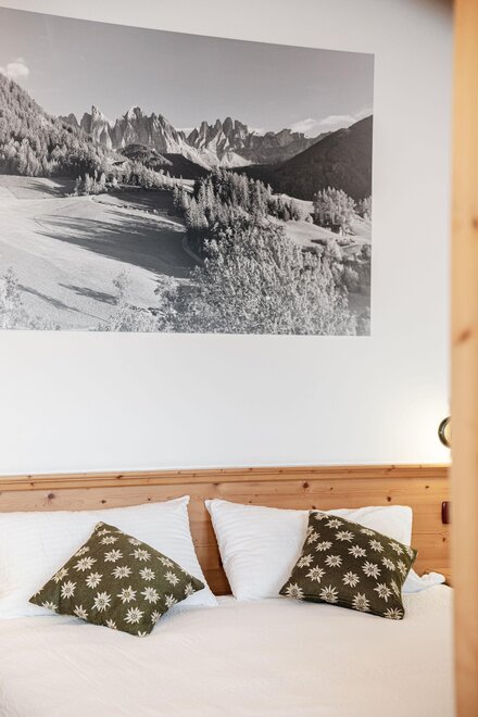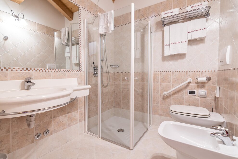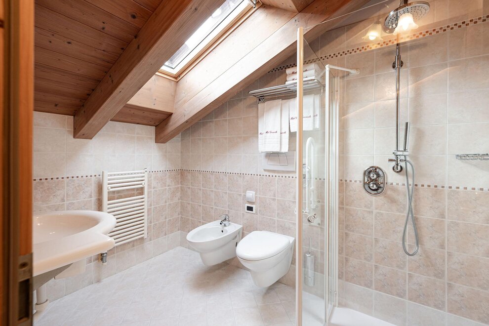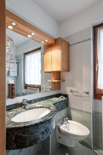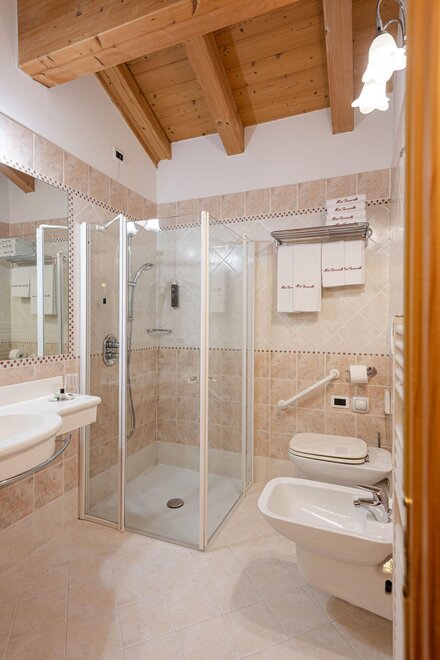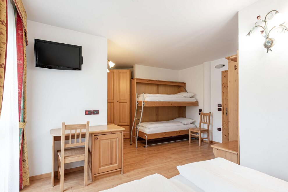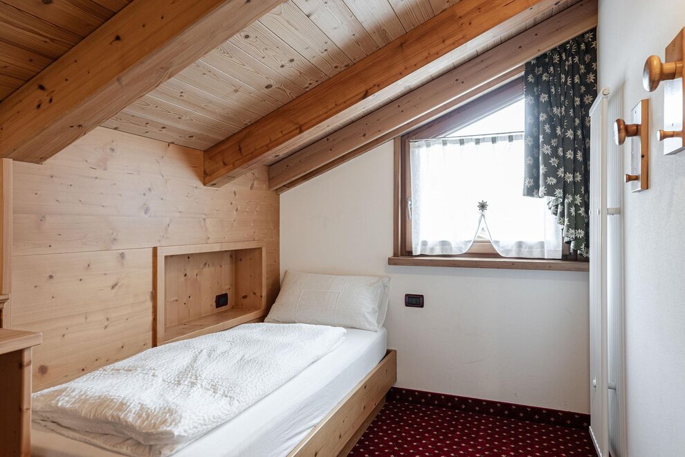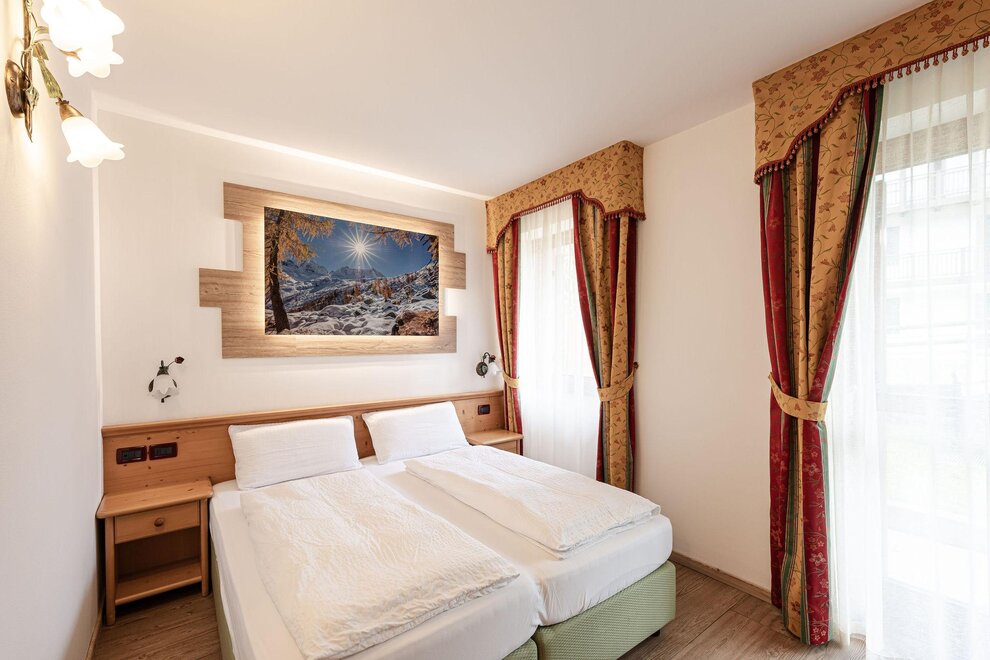 Sie wurden kürzlich renoviert, wodurch sie größer und moderner wurden und stets dem Bergstil folgen. Sie verfügen über ein Doppelbett (umwandelbar in zwei Einzelbetten) und ein zusätzliches Einzelbett. In einigen Zimmern besteht auch die Möglichkeit, ein 4. Bett hinzuzufügen, einige verfügen über einen Balkon, während eines über einen Dachboden mit Panoramafenster verfügt.