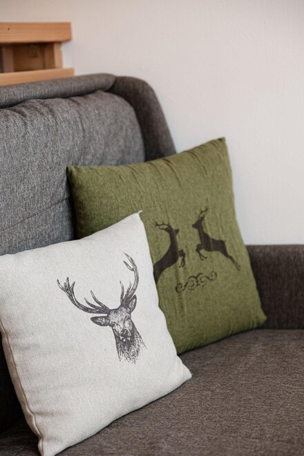 Konzipiert für die Unterbringung von (auch großen) Familien, die ihren Eltern und Kindern Platz bieten, aber auch für die Unterbringung kleinerer Gruppen von Freunden. Es verfügt über ein Doppelbett (umwandelbar in zwei Einzelbetten), eine Stube mit Couchtisch und Schlafsofa, das in ein Etagenbett für Kinder umgewandelt werden kann, und bietet dank der großen Panoramafenster einen atemberaubenden Blick auf unsere Berge. Von diesem Zimmer aus gelangt man in ein separates Zimmer mit zwei Einzelbetten.