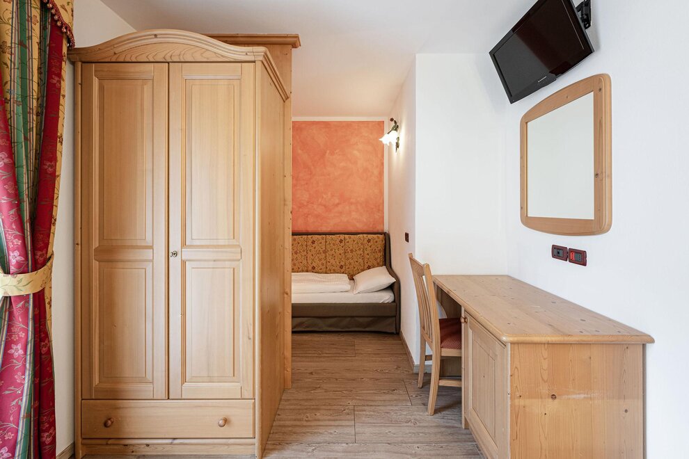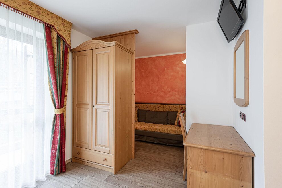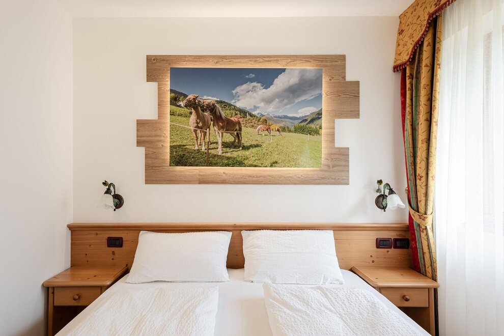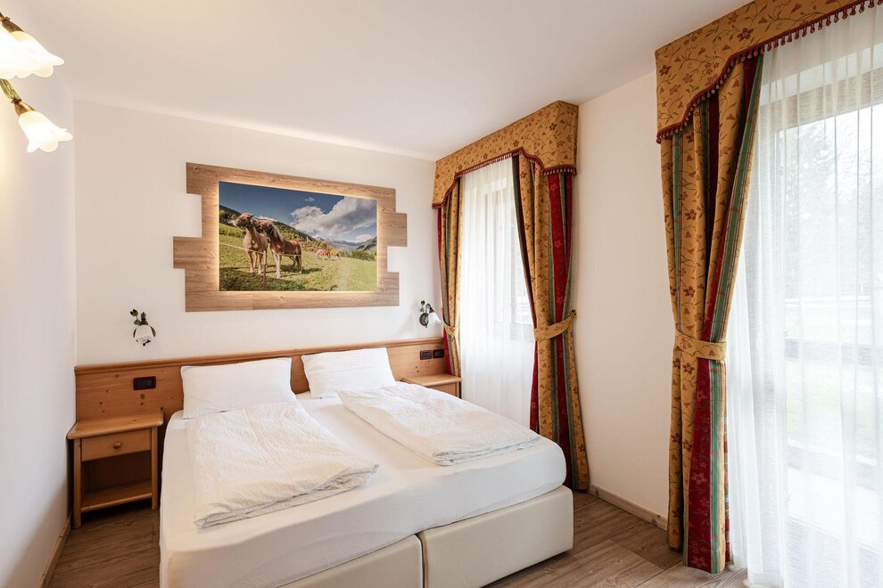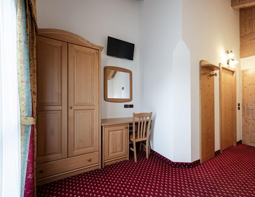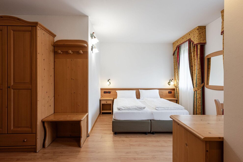 Zimmer mit den wichtigsten Dienstleistungen, im einfachen, aber komfortablen Alpenstil eingerichtet. Sie können entweder als Doppelbett oder mit zwei Einzelbetten ausgestattet sein. Sie verfügen über einen Balkon oder einen privaten Garten im Freien.