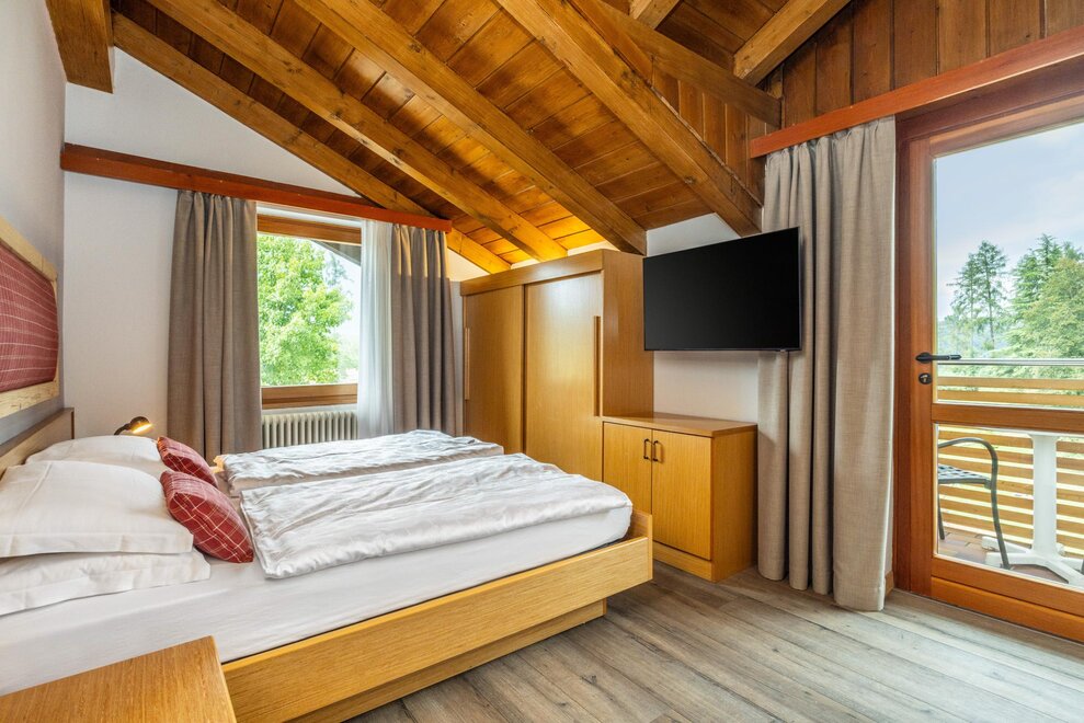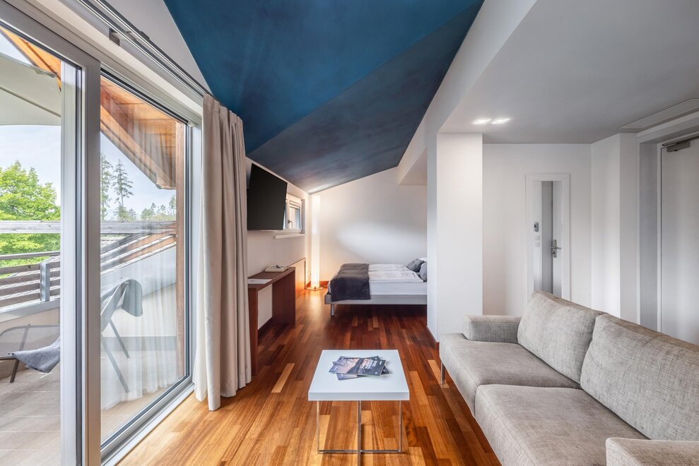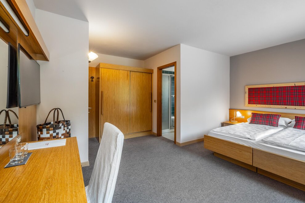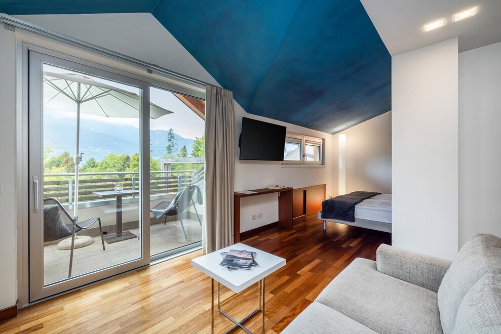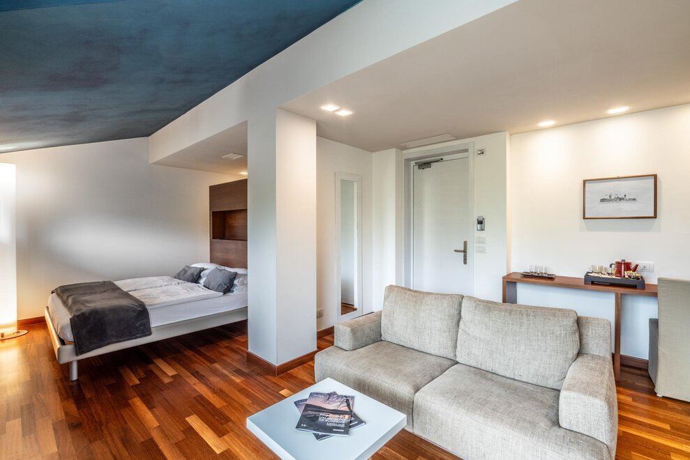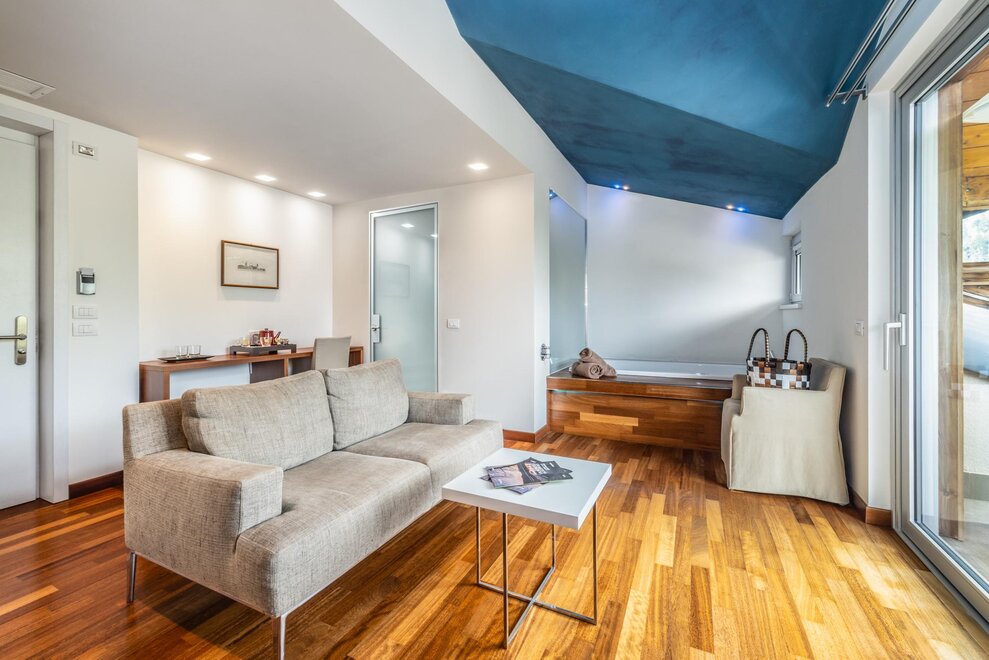 Konfortables Zimmer mit Wohnbereich, Aussichtsbalkon, begehbarem Schrank, Badezimmer mit Dusche und Whirlwanne, Fön, Tv LCD, courtesy set, Minibar, Telefon, Internet und Safe. Alle Suite sind im Neubau des Hotels. Alle Zimmer sind mit dem Aufzug erreichbar.