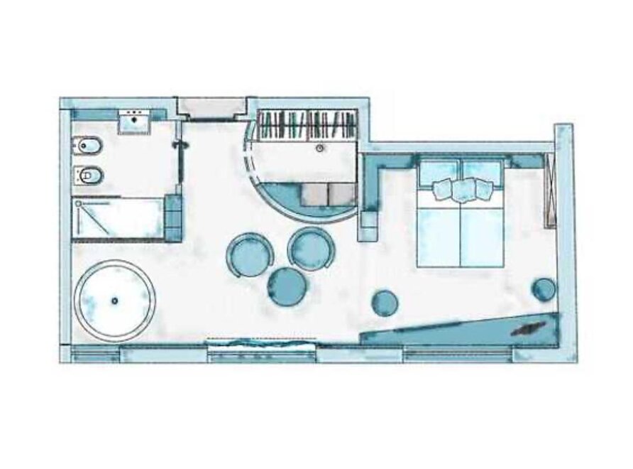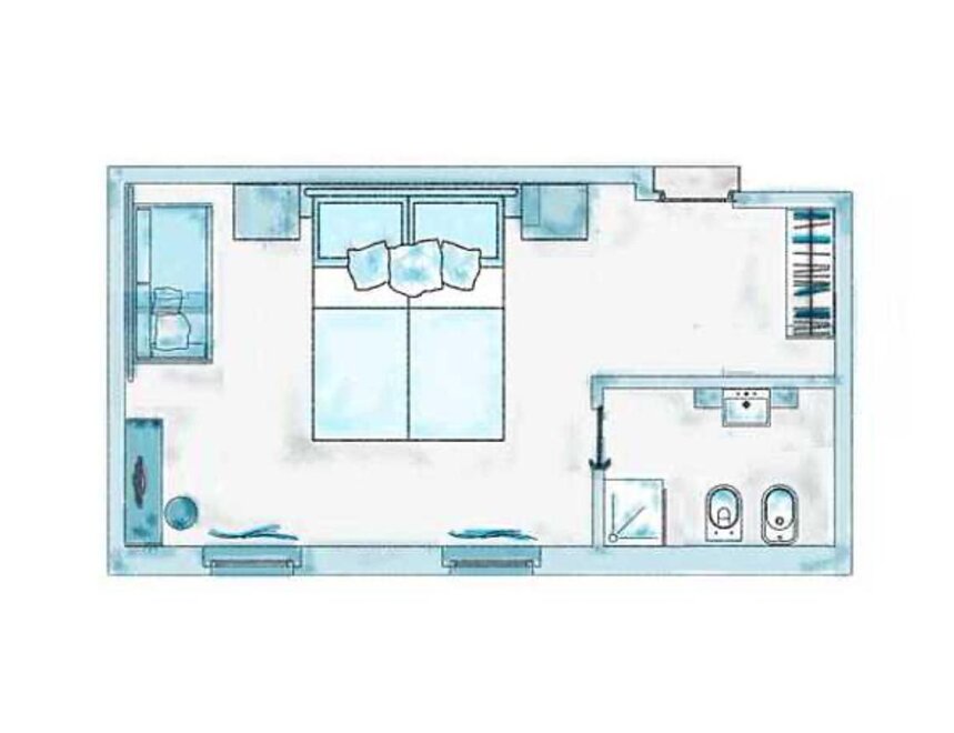 Doppelzimmer mit getrenntem Wohnbereich, Balkon, begehbarem Schrank, Badezimmer mit Dusche und Fön, 2 Tv LCD, Minibar, Telefon, Internetanschluss und Safe.