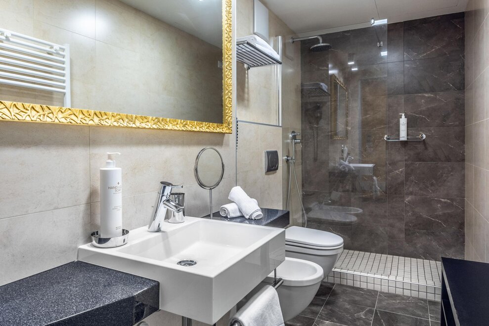 Dusche, Bidet, Bad, Waschtisch, WC, Fließendes Kalt- und Warmwasser, Bad, WC, Dusche, WC